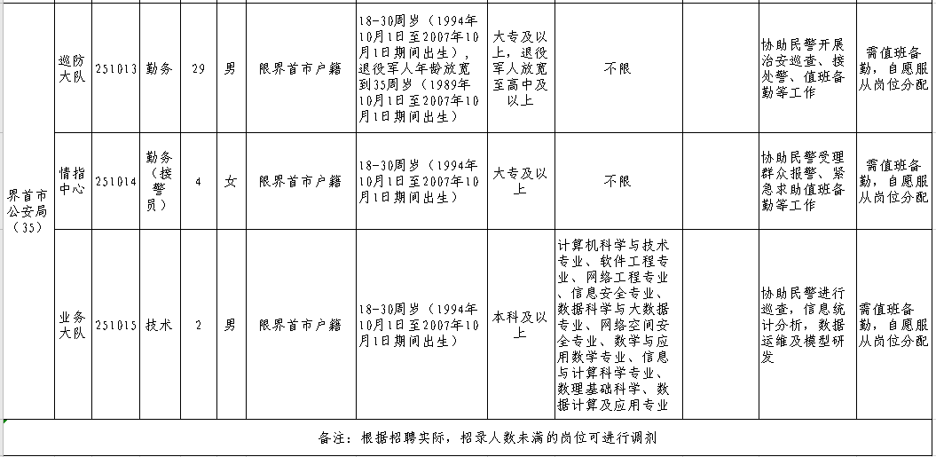 大皖新闻讯10月20日,记者获悉,阜阳市公安局根据工作需要,面向社会公开招聘115名警务辅助人员。具体岗位及相应条件见《阜阳市公安局2025年第三批公开招聘警务辅助人员岗位计划表》。