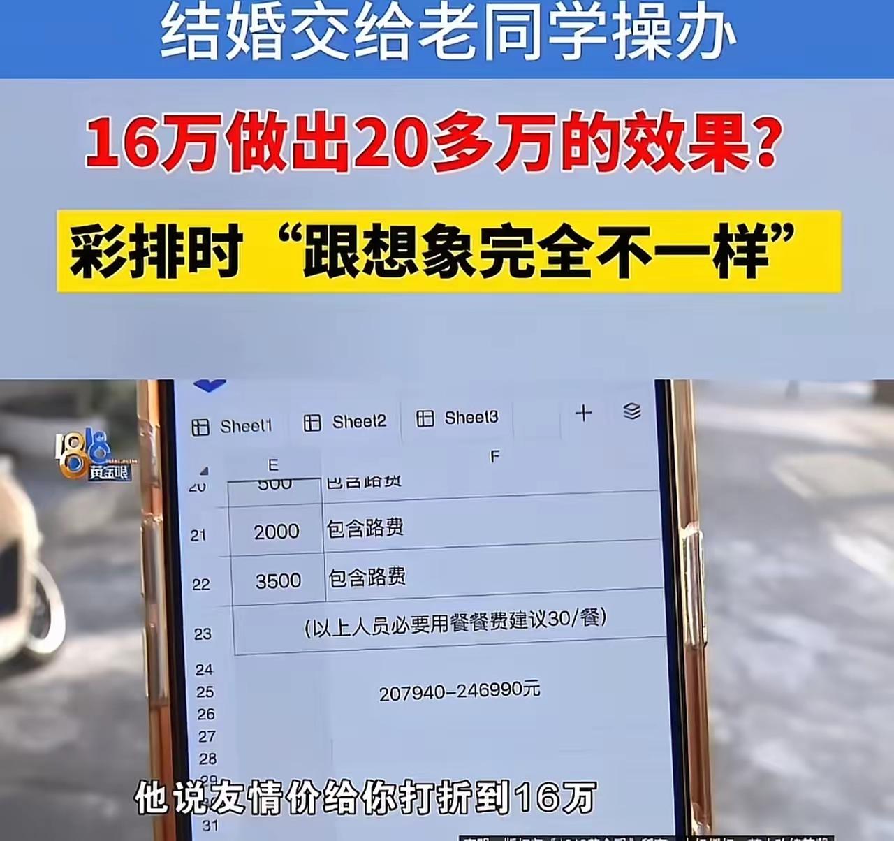 “被熟人杀猪!”浙江台州,女子花16万找老同学操办婚庆,老同学承诺16万做出20多万的效果,保证物有所值!可是万万没想到,婚礼现场非常廉价,连一朵真花都没有!后来才知道,老同学外包给别人5万6,直接吃回扣!! 你是否也曾相信过“朋友就是信任”的那一刻?在这个物欲横流、快节奏的社会,朋友圈的真诚似乎变得愈发稀缺。可当一场原本应该满载祝福与喜悦的婚礼,变成了一场“被熟人杀猪”的“血拼”游戏,你是否也会心生愤怒、无奈甚至深深的失望? 故事的主人公是一位来自浙江台州的女子,为了给自己的人生大事一份特别的纪念,花了整整16万,找了曾经的老同学来操办婚礼。她满怀期待,信任这份“老友的承诺”,相信会有一个完美而难忘的婚礼。对方承诺,用16万能打造出价值20多万的豪华效果,保证物超所值。可是,等到婚礼当天,迎接她的竟是一场“廉价秀”——没有一朵真花,没有漂亮的布置,甚至连基本的装饰都显得那么简陋。心碎的瞬间,仿佛整个世界都暗淡了。 更令人震惊的是,事情的真相逐渐浮出水面——原来,那个曾经的“老同学”竟然将婚礼的部分外包给了别人,花了5万6,却只收了自己一小部分“佣金”。剩下的钱,全部被吃回扣,导致整个婚礼的品质严重缩水。那一刻,她终于明白:这场“朋友的承诺”不过是一场“商业套路”,自己竟然成了那个“被杀的猪”。 这不仅是一场婚礼的败局,更是一面镜子,映照出人性中的“利益”与“背叛”。在这个“关系越拉越远,信任越变越薄”的时代,多少人都在用“关系”谋取私利,用“情谊”圈钱。那些曾经觉得贴心、真诚的朋友们,是否也在某个瞬间变了味?我们不得不反思:是真正的友谊被金钱冲淡,还是我们早已在无形中迷失了初心?难道,所谓的“人情”,只不过是利益的交换吗? 更让人深思的是,这样的“套路”背后,折射出的是整个社会的“信任危机”。我们在追求“物质满足”的同时,是否也在无形中丧失了最基本的“诚信”?当“关系”变成了“交易”,当“友情”被利益绑架,我们还能相信什么?还能相信人性中的善意吗? 这场婚礼的“悲剧”,其实是一面镜子,提醒我们:在这个纷繁复杂的社会,守住自己的底线、坚持诚信,才是最值得珍惜的财富。朋友之间的关系,不能用金钱来衡量,更不能用利益来绑架。否则,等待我们的,将只是“被杀猪”的惨痛代价。 你有没有遇到过类似的“套路”或“背叛”?你又是如何看待“朋友和利益”的关系?欢迎在评论区畅所欲言,让我们一起探讨:在这个看似光鲜亮丽的社会背后,真正的价值是什么?真正的友情,又该如何守护?