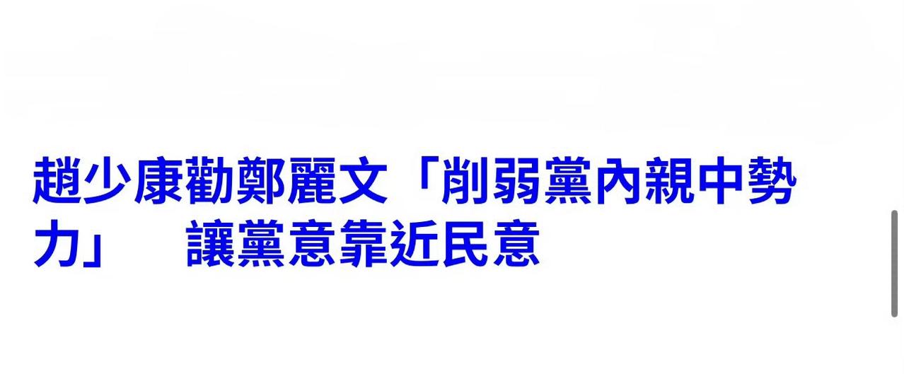 赵少康彻底疯啦! 郑丽文当选新的国民党主席后,赵少康不但没有恭喜郑丽文,还发文恐吓郑丽文。要求郑丽文“不能太亲大陆”,并且要削弱国民党内部的亲陆势力。 赵少康的这种行为多离谱,就不用多说了,赵少康本来,应该是一个政治上的“老狐狸”,可以说是深谙政治游戏的规则。 可偏偏最近,他的所作所为,让人觉得,他似乎已经完全,失去了政治理智,郑丽文当选国民党主席,是党内一件重要的大事,大家都期待,新领导能带领国民党,走向新的局面。 然而,赵少康非但没有表现出,一点政治家该有的风度,反而站在道德高地上,给新主席指指点点。 甚至用威胁的语气,告诉她不能“亲陆”,否则国民党就完了。 他对郑丽文的当选,没有任何尊重,反而像个“政治伪君子”一样,大家想想,台湾的民意,真的能被,这么简单的威胁控制吗? 他所谓的“国民党如果不削弱亲陆势力就会完蛋”的言论,实在是太过于片面,赵少康显然低估了,台湾人民的智慧。 他们不是愚昧的工具,不会因为几个政治人物的喊话,就改变自己的看法。 (每天更新,点进主页我们一起看世界!喜欢文章的可以帮忙点个关注点个赞~) 退一步来说,赵少康凭什么以自己的眼光,去判断什么是对的?大家怎么看?