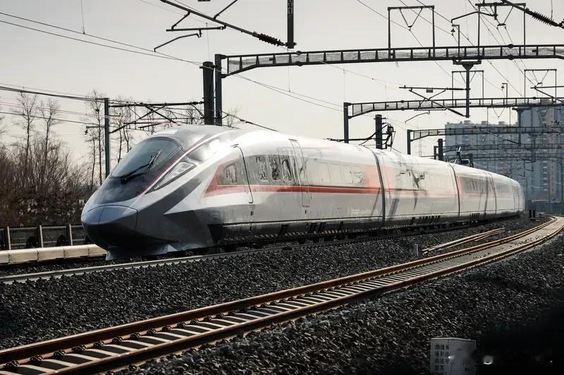 全球最快动车组CR450开展考核 时速450公里创纪录 被称作"全球最快高铁"的CR450动车组正在沪渝蓉高铁开展运用考核。自去年底样车下线以来,已通过多轮测试,交出时速450公里的答卷,各项指标均合格。这一突破使中国高铁继续保持世界领先地位,预计2026年将正式投入运营。
