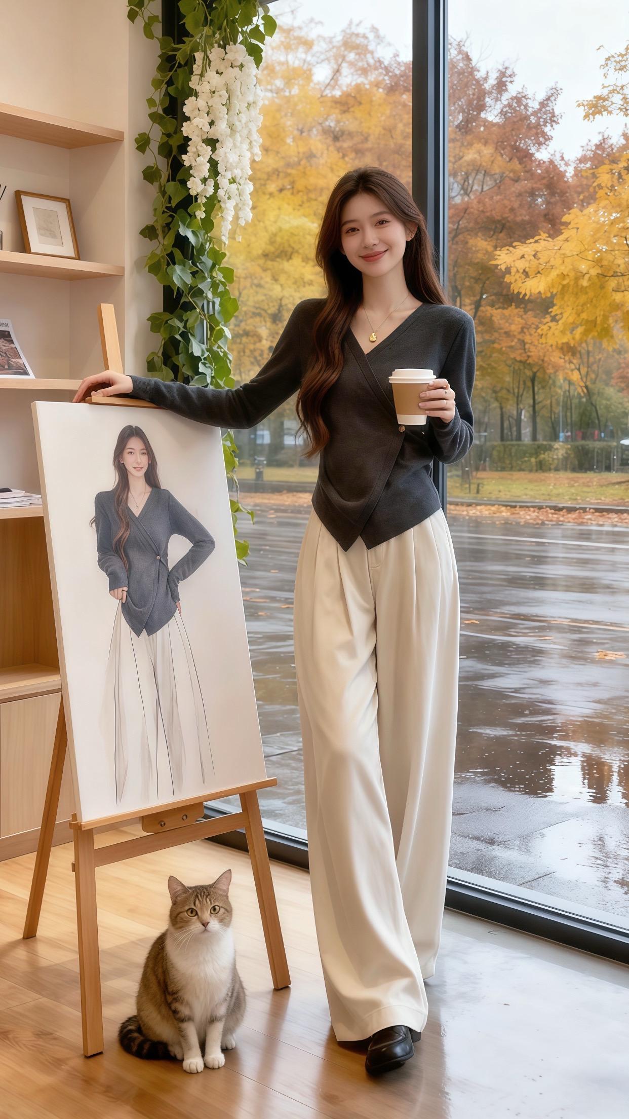 《交叉V领衫:在雪天活出了显瘦女主感》深秋雪飘时分,林薇在画架前给画布...
