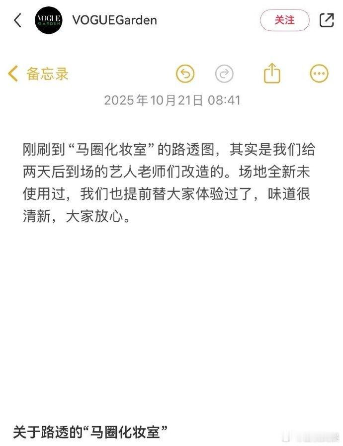 针对 Vogue 盛典马圈化妆室的相关讨论,Vogue 对马圈化妆室话题作出回应