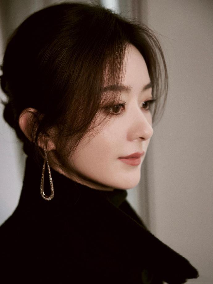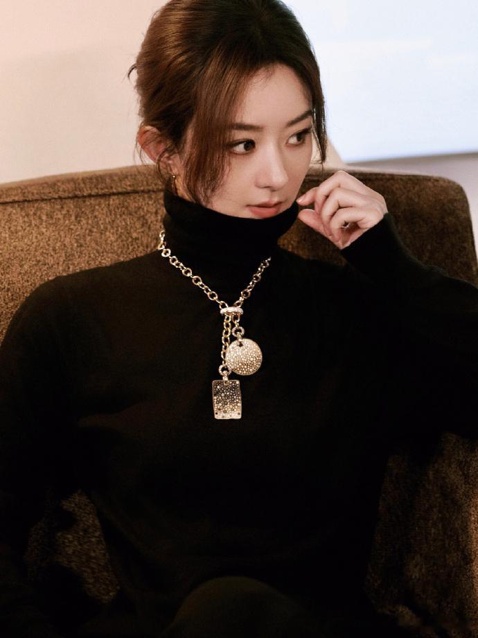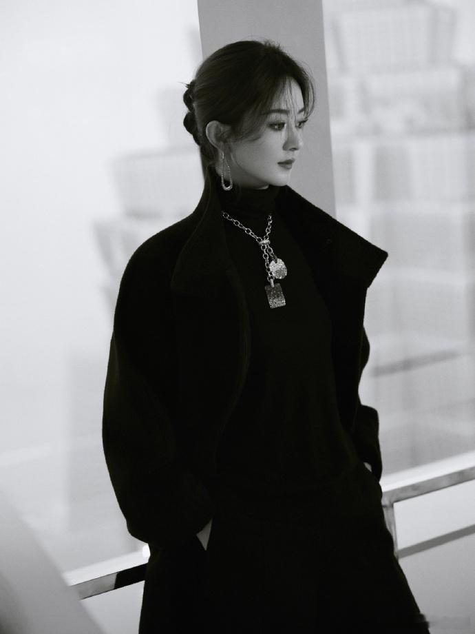 赵丽颖拥有全黑大衣穿搭,同时她也有黑色高领大衣造型,不同款式的黑色大衣传递出她的