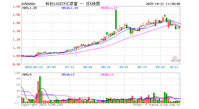 科创100ETF汇添富(589980)涨1.88%,半日成交额618.80万元