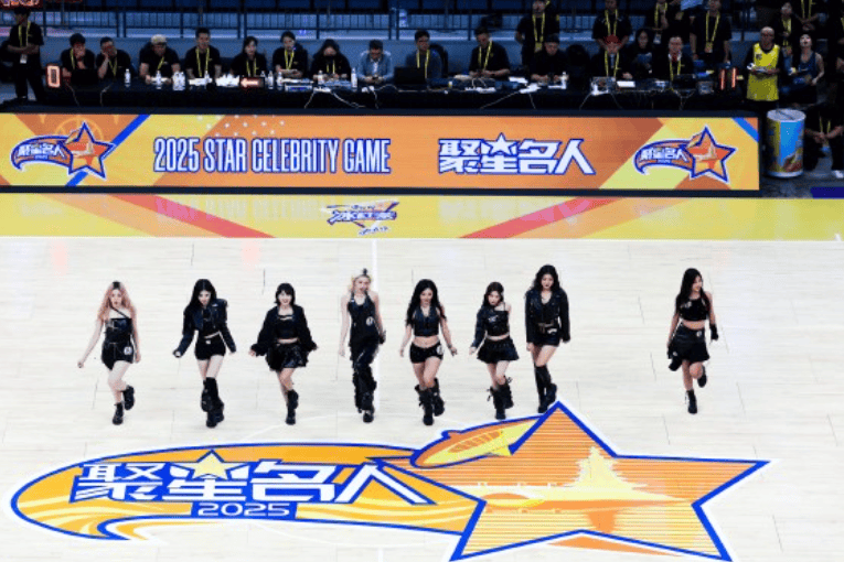 配文道:篮网拉拉队继续闪耀篮球场!这一次,我们来到聚星名人赛,下次会是哪里呢?