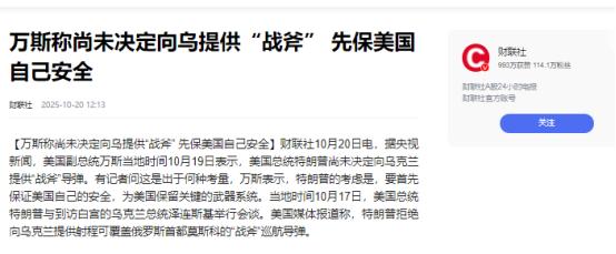 美国副总统宣布了! 10月20日,美国副总统万斯表示,美国总统特朗普尚未决定向乌克兰提供“战斧”导弹,万斯还强调特朗普的考虑是要首先保证美国自己的安全,为美国保留关键的武器系统。 这一消息让乌克兰的“战斧”导弹期待再次落空。 美国的“战斧”导弹是一种亚音速远程巡航导弹,最大射程超过2000公里,既能从舰艇和潜艇发射,也有陆基型号。 它曾在海湾战争、阿富汗战争等多次军事行动中亮相,平均命中率高达80%,是美国军事威慑的重要武器。 然而美国目前的“战斧”导弹库存虽然有大约4150枚,但自2022年以来,五角大楼仅采购了200枚,其中120多枚已经被发射。 在2026年预算中,五角大楼申请的相关资金只够采购57枚“战斧”。而且,“战斧”导弹的生产周期较长,即便是已经和美国签了合同的买家,比如德国,也得等上一年半才能收货。 很明显美国政府的算盘打得很精,一方面,特朗普认为美国也需要“战斧”导弹来保证自身安全。近年来,亚太地区的局势日益复杂,美国在该地区的军事部署需要大量的先进武器。如果将大量“战斧”导弹提供给乌克兰,可能会削弱美国在亚太地区的战略威慑能力。 另一方面,美国政府担心向乌克兰提供“战斧”导弹会引发俄罗斯的强烈反应,导致美俄关系进一步恶化。俄罗斯总统普京已经多次警告,如果美国向乌克兰提供“战斧”导弹,将损害俄美关系以及和平进程向前推进的机会。 对于乌克兰来说,“战斧”导弹的吸引力不言而喻。目前,乌克兰主要依靠国产远程无人机打击俄罗斯纵深目标,但这些无人机只能携带几十公斤的爆炸物,威力有限。如果乌克兰获得“战斧”导弹,就可以打击到莫斯科、圣彼得堡等俄罗斯境内的重要目标,显著增加俄防空系统的压力,从而在未来谈判中拥有更多筹码。 不过,乌克兰想要获得“战斧”导弹并非易事。即便美国决定提供,数量也会非常有限。美国智库新美国安全中心国防项目主任斯泰西·佩蒂约翰分析认为,美国只能向乌克兰供应20至50枚“战斧”。而要达到战略效果,乌军需要以每月至少100枚的持续波次发射“战斧”。 此外,俄罗斯也并非没有应对之策。2018年,叙利亚曾将两枚未引爆的“战斧”导弹移交给俄罗斯,这为俄方深入了解“战斧”的相关技术提供了可能性。 从国际局势来看,美国向乌克兰提供“战斧”导弹的决定还受到北约内部的影响。虽然北约成员国在对乌军事援助上总体保持一致,但各国的具体情况和利益诉求并不相同。一些国家担心过度卷入俄乌冲突会给自己带来安全风险和经济负担。 在国内政治方面,美国政府的“停摆”也对国防事务产生了影响。10月20日,负责美国核武器储存管理的关键机构——美国能源部下属的美国国家核安全管理局开始让大部分员工强制休假。这是该机构自成立以来首次遭遇此类情况。政府“停摆”导致资金中断,可能会影响到包括“战斧”导弹在内的武器生产和维护。 总的来说特朗普政府在是否向乌克兰提供“战斧”导弹的问题上陷入了两难境地。提供“战斧”导弹可能会在一定程度上增强乌克兰的军事实力,但也会带来一系列的风险和挑战。不提供“战斧”导弹,又可能会影响美国在国际社会的形象和对盟友的支持力度。最终的决定,还需要综合考虑美国的国家安全、战略利益、国内政治以及国际局势等多方面因素。 来源:财联社 【万斯称尚未决定向鸟提供“战斧”先保美国自己安全】