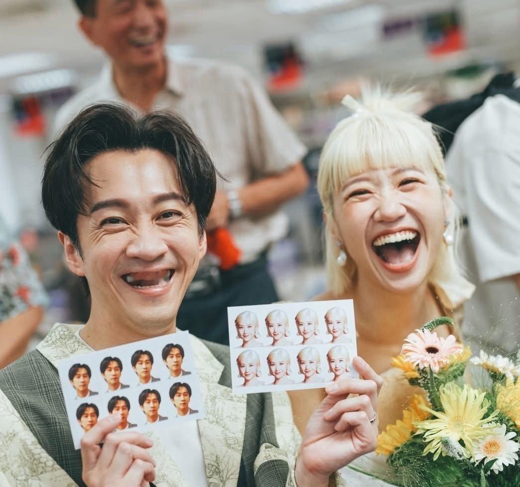陈汉典和圈内女友到民政局登记结婚,两个人的性格都好开朗,笑容满面,看起来好般配。