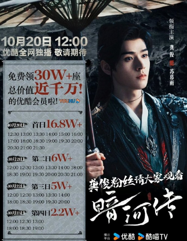 开局7广,开播首日热度已经破7500了,暂列第四,《凡人修仙传》首日热度是8200,龚俊粉丝实力还挺强的,准备了30万云包场,粉丝包场数量仅次于成毅的《赴山海》和肖战的《藏海传》,演员能做的基本做了,剩下就看剧情如何了。