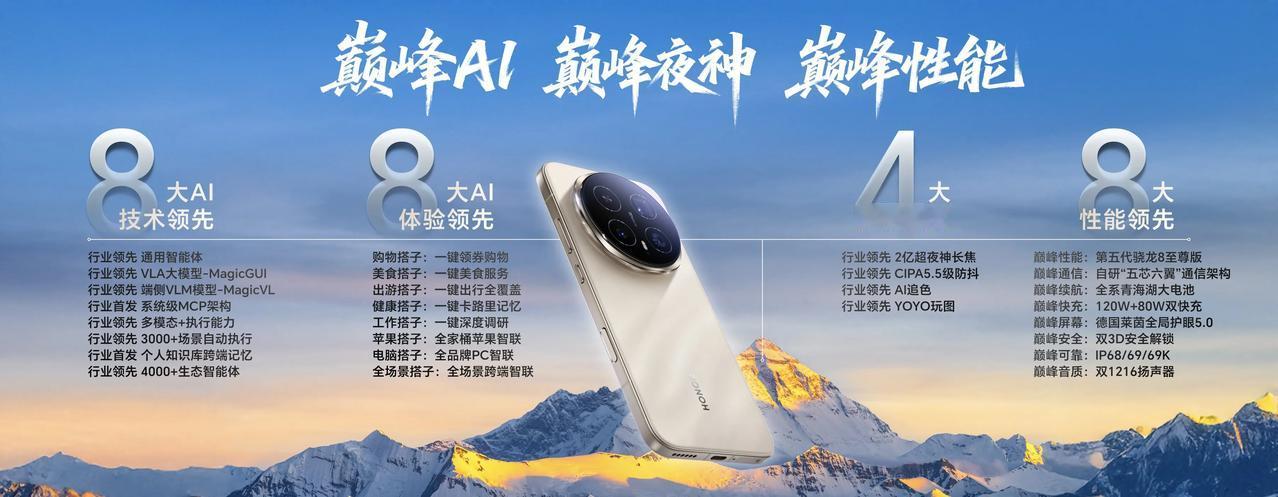 10月15日,这个万众期待的日子终于是来了,特别是对于很多的荣耀用户来说,更是早就已经期待不已了。荣耀于北京水立方召开以“开新局 见未来”为主题的发布会,重磅推出新一代旗舰机型荣耀Magic8系列以及荣耀MagicOS10,正式开启自进化AI原生手机新时代。该系列围绕“自进化AI”展开核心布局,以“AiMAGE影像”为突出亮点,并依托顶级性能硬件,全力打造懂用户的万能智慧伙伴。 作为行业首款自进化AI原生手机,荣耀Magic8系列拥有8大AI技术领先优势,搭载行业首个自进化AI操作系统——荣耀MagicOS10。其中,YOYO智能体通过中国信通院L3级认证,能在购物、美食、出游、健康、工作五大场景为用户提供贴心服务。此外,荣耀推出“MagicOS月月焕新计划”,实现系统月度迭代,突破“出厂即终点”的局限。影像上,荣耀Magic8 Pro主摄搭载2亿超夜神长焦,规格顶尖,全新AiMAGE影像系统具备自进化能力,带来全流程摄影自由。