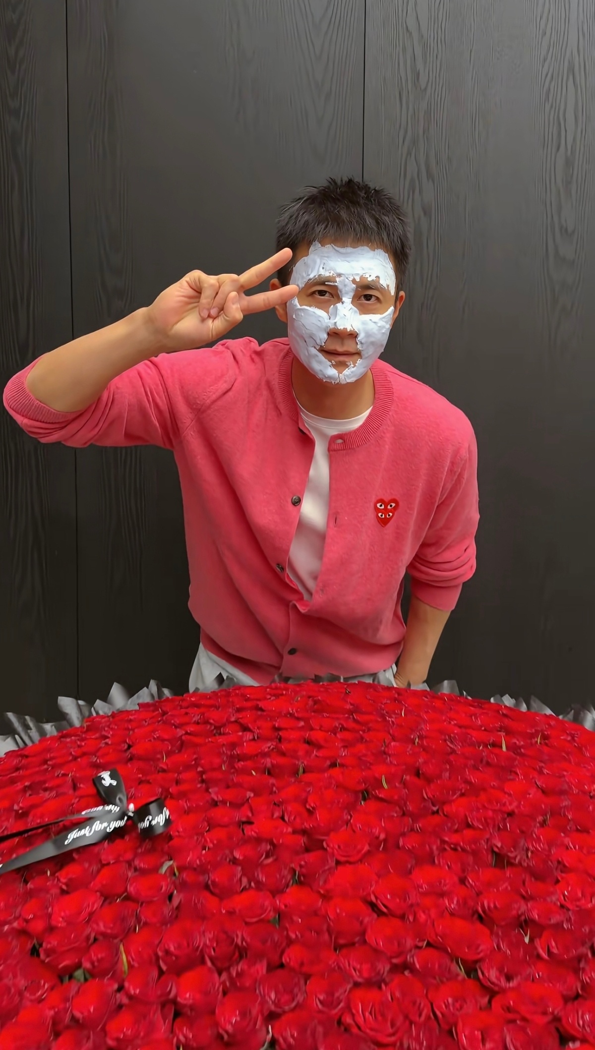杜淳给老婆王灿送了999朵红玫瑰,庆祝结婚9周年。