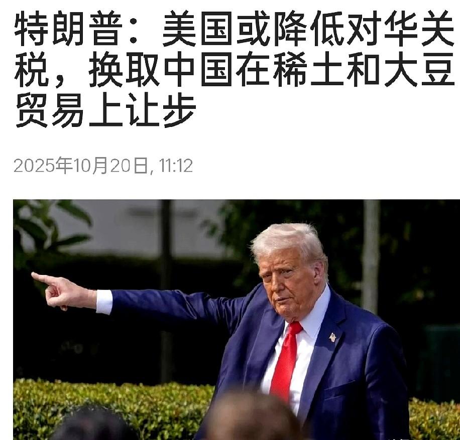 特朗普又做梦了?指望中国回头买他那堆大豆?笑死。 10月19号,美国那边,他对着镜头叭叭希望中国买大豆,禁芬太尼,别在稀土上耍花招。哎哟,说得跟咱欠他似的! 你懂那种感觉吗?就是你刚被人拿刀架脖子上抢了钱包,转头他还问你咋不请我吃饭?不是一次,是整整三年!他亲手把关税拉到天价,逼得咱们转头找巴西、阿根廷,现在又装失忆? 我当年在酒泉靶场搞遥测,见过最离谱的弹道,都没他这逻辑飘。人家可是民主灯塔,说翻脸就翻脸,说求人还端着架子脸呢? 但说真的,气归气,咱得佩服自己。卡脖子?卡了又怎样!举国体制一发力,大豆进口多元化早铺开了,稀土提纯技术反超他们两代。不是我不明白,这世界变化快,可咱这步棋,走得稳、准、狠。 他们还在那儿幻想凭实力地位说话?醒醒吧!现在不是1999年了。你打你的关税战,我搞我的产业链。你烧钱,我攒劲。你喊话,我沉默。沉默最吓人因为下一秒,可能就是东风快递签收提醒。 我猜下一步,他们真急了会偷偷放水,找中间商绕道卖豆子。但晚了。信任这东西,碎了就粘不回去。就像当年两弹一星那代人说的靠别人,不如靠自己。 快。准。狠。 不是梦,是现实。 你特朗普接着演,我们接着干。