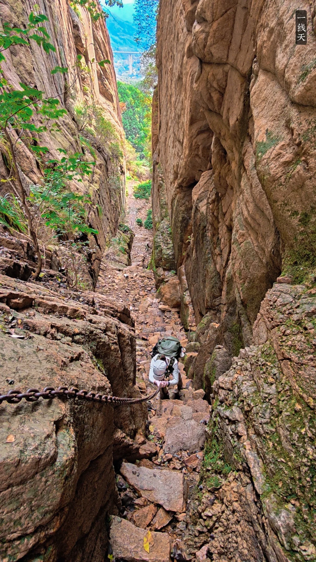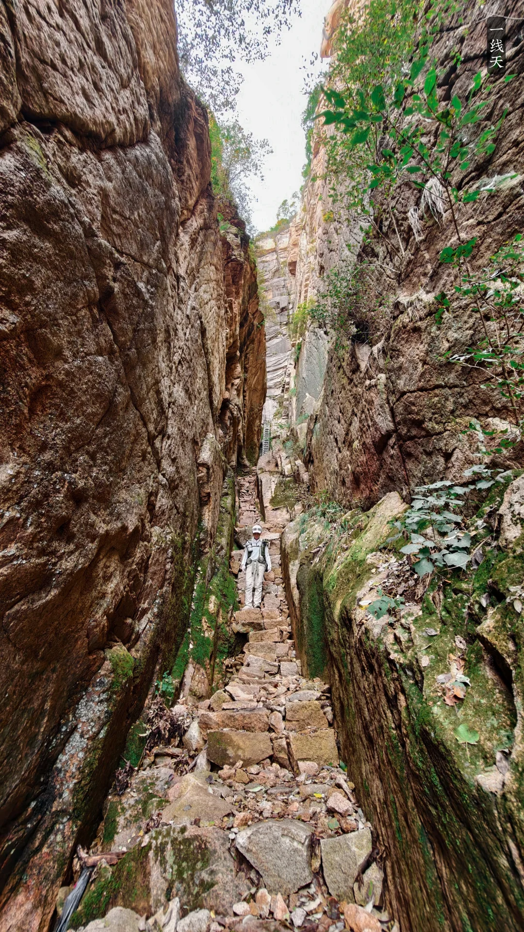 [向右R]一线天是个小折返路线,两侧岩壁高耸,通道逼仄,抬头只见一线天际,很壮观