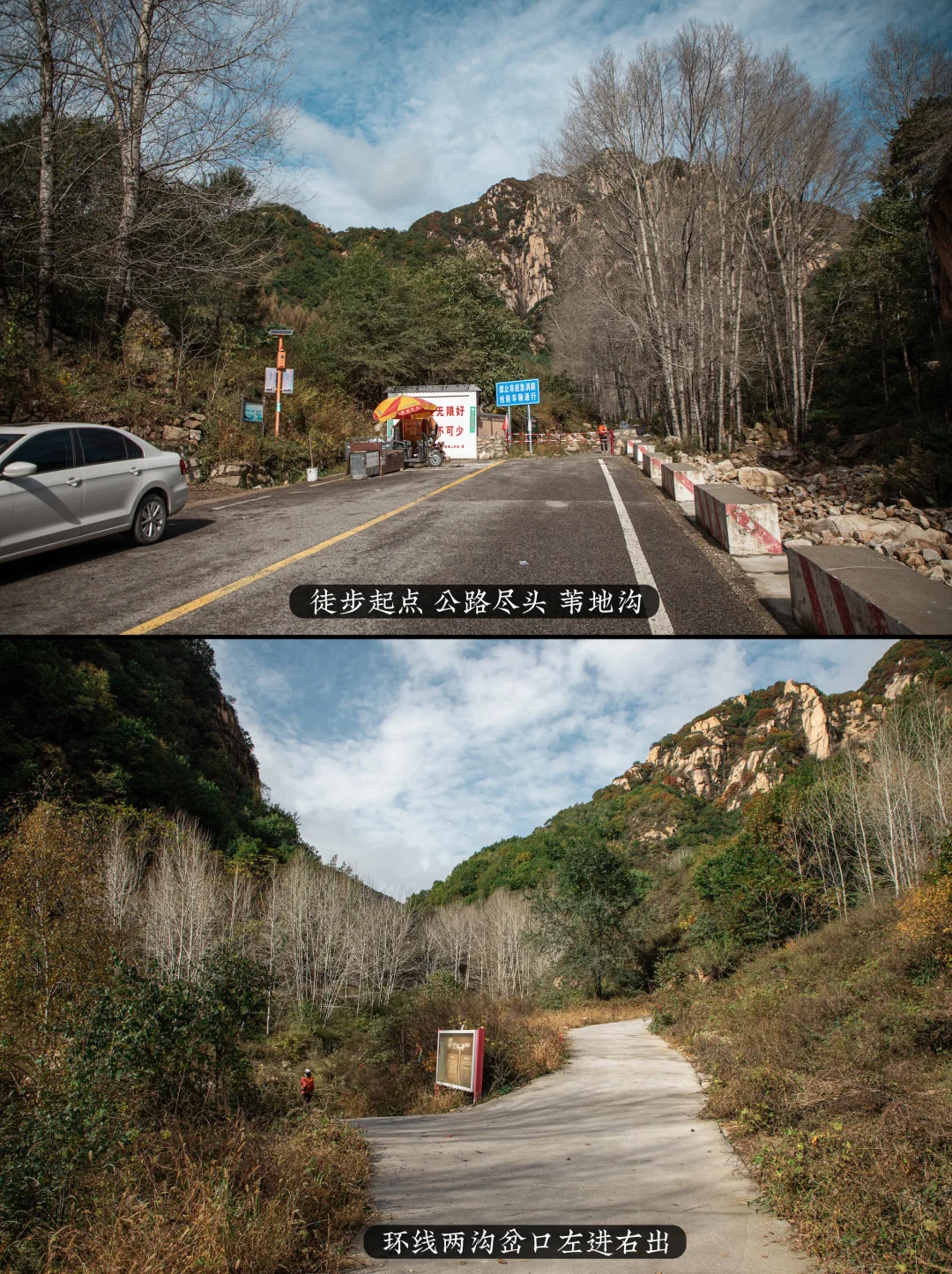 [向右R]到了导航目的继续往前开500米左右,能看到栏杆,就是公路尽头,我们徒步的起点,车停不挡道路边
