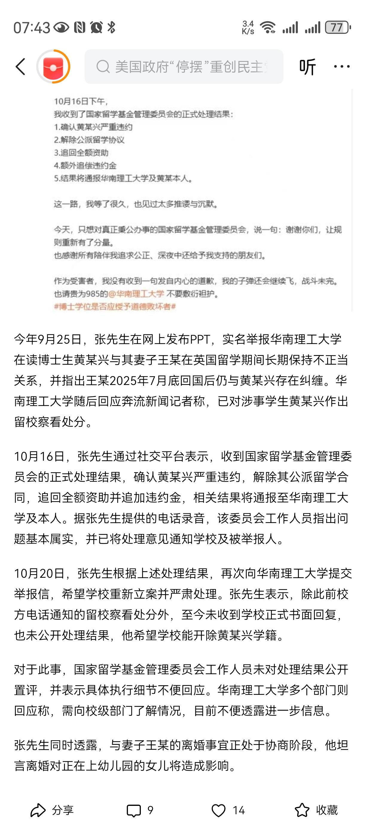 老校友被新校友戴了绿帽子, 咋整? 都是这所名校的学生, 有的是博士有的是本科, 结果撕开了脸, 让这所名校陷入尴尬之中!同学出轨 始作俑者还是这个垃圾女方, 做的太过分了。 在国外出轨还不够, 回到祖国还继续男盗女娼, 做一些苟且之事!