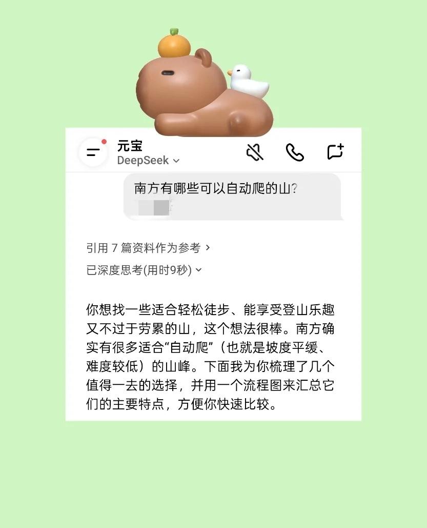 南方全自动爬山耶! 一直听朋友说拉着我去爬山,我就是那种望而止步的感觉[伤心],没想到今天突然刷到南方,竟然有全自动爬山耶[亲一个R],问了一下元宝里的deepseek发现竟然还不少,不行了,我要去看看这几个有没有我想去的城市,顺带去爬个全自动的山,哈哈,拉着我朋友去,怎么不算是爬过山的人呢 大学生爬山 去爬不被定义的山 征服一座山 腾讯元宝
