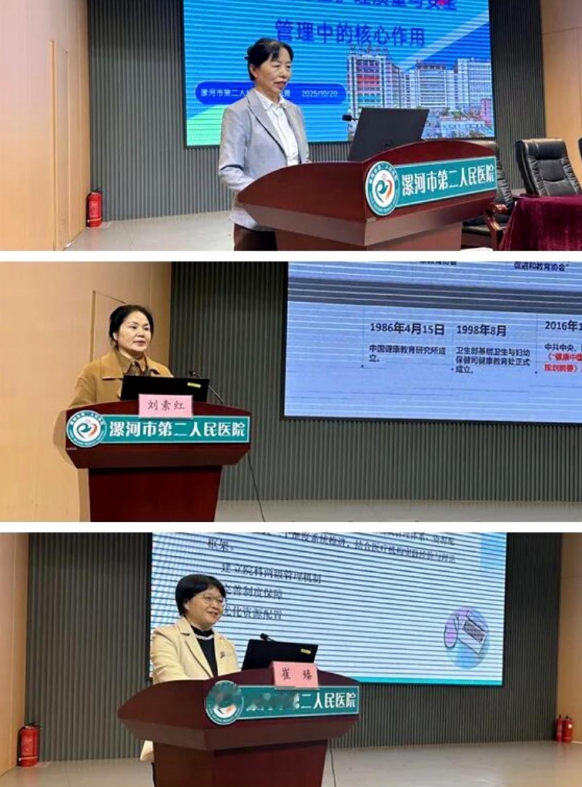 在学术交流环节,多位护理专家围绕健康教育的新理念、新方法与新技术展开深入探讨。市二院护理部主任高凯霞分享了《健康教育在护理质量与安全管理中的核心作用》;市中心医院护理部副主任刘素红讲解了《基于赋能理论构建三级医院健康教育护士健康素养提升路径》;市六院护理部副主任崔臻以《赋能·融合——构建新时代医院护理健康教育体系的实践与思考》为题进行交流;临颍县人民医院护理部副主任张颍歌介绍了《基于行为窗口理论的护士高效能沟通技巧》;市二院普外科护士长王书霞围绕《肿瘤患者营养与身心健康:吃出健康,动出活力》展开讲解;麻醉手术部副护士长莫敬敬探讨了《基于指南的静脉治疗健康教育及沟通模式》;小儿外科骨干护士张小玉则就《智能时代,如何让健康科普“活”起来?——AI在护理领域的创新实践》进行分享。专家们结合临床实例,展示了健康教育的最新成果与实践经验,内容充实,视角多元,为参会者带来深刻启发。