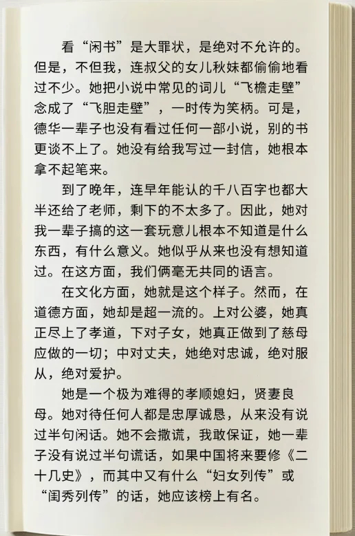 来看看大师的老婆,季羡林写他的妻子德华,干瘪扁平的溢美之词,那个时代的女人好苦。