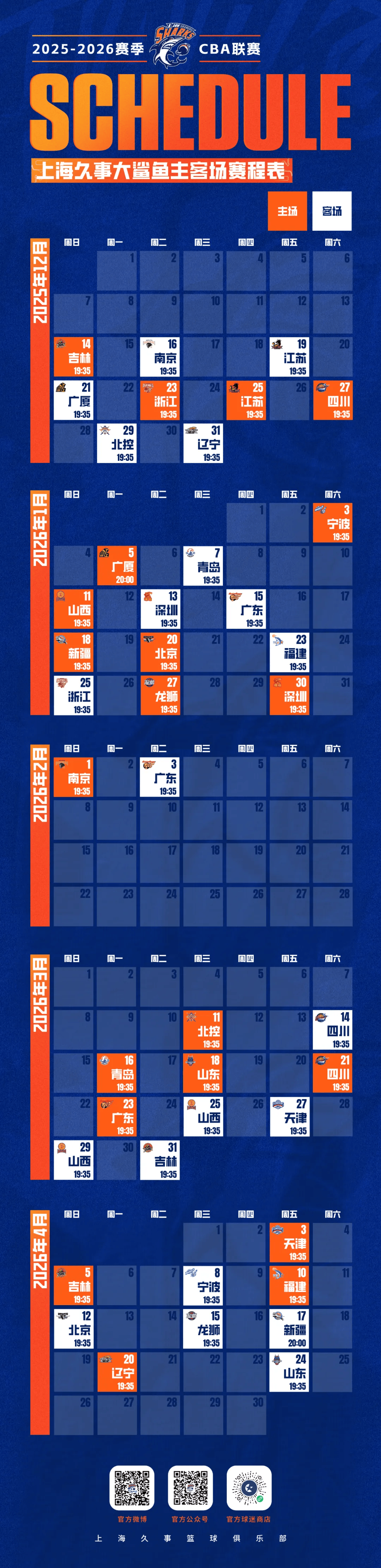 上海男篮官方今日更新社媒,分享球队新赛季赛程。