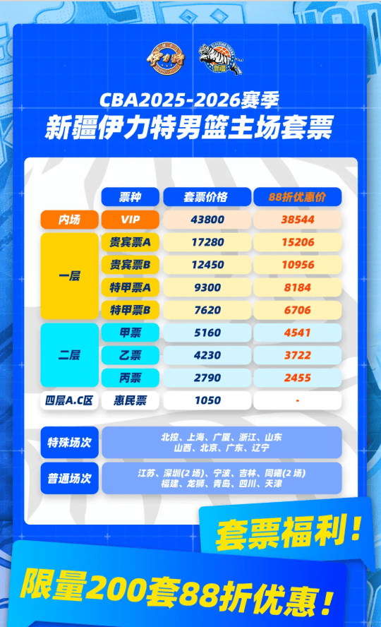 2025-2026赛季套票预售期间,套票价格优惠低至88折。这是赛季中购买套票的最佳时机,更是真正铁杆球迷不容错过的超级福利!
