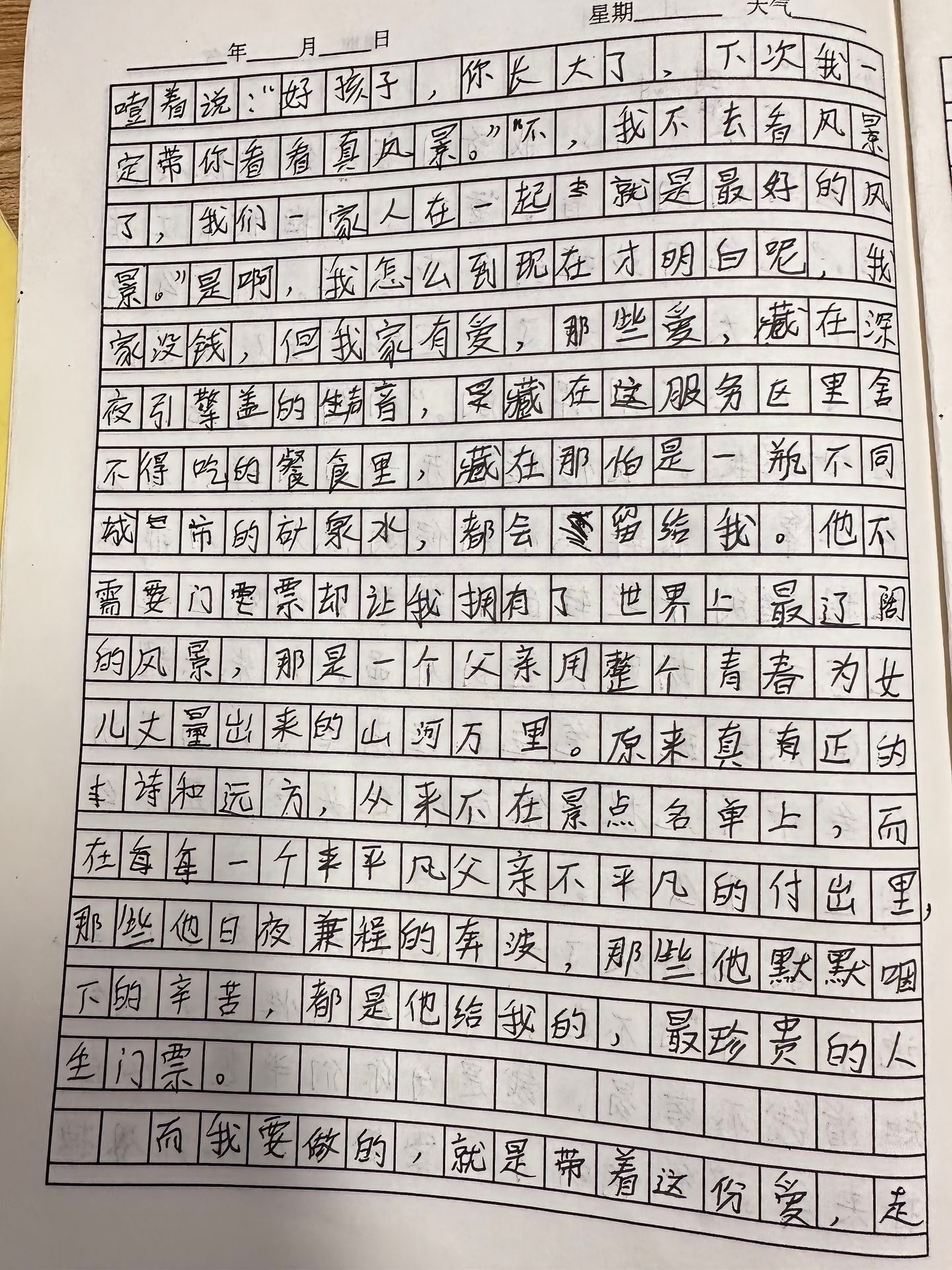 “那些爱,藏在深夜引擎盖的声音,藏在这服务区里舍不得吃的餐食里,藏在那怕是一瓶不同城市的矿泉水都会留给我,他不需要门票却让我拥有了世界上最辽阔的风景,那是一个父亲用整个青春为女儿丈量出来的山河万里”