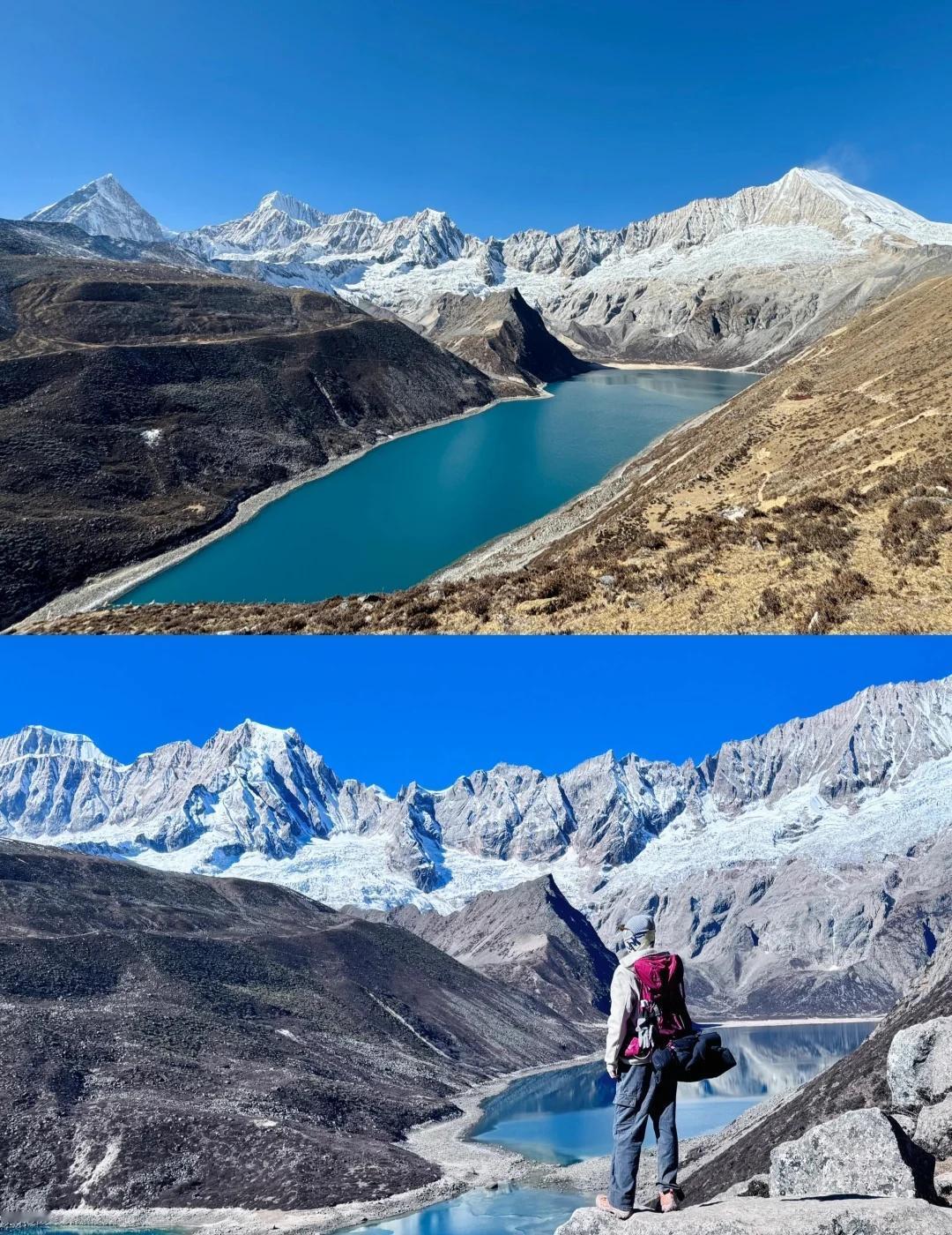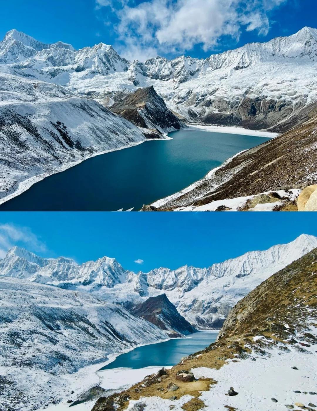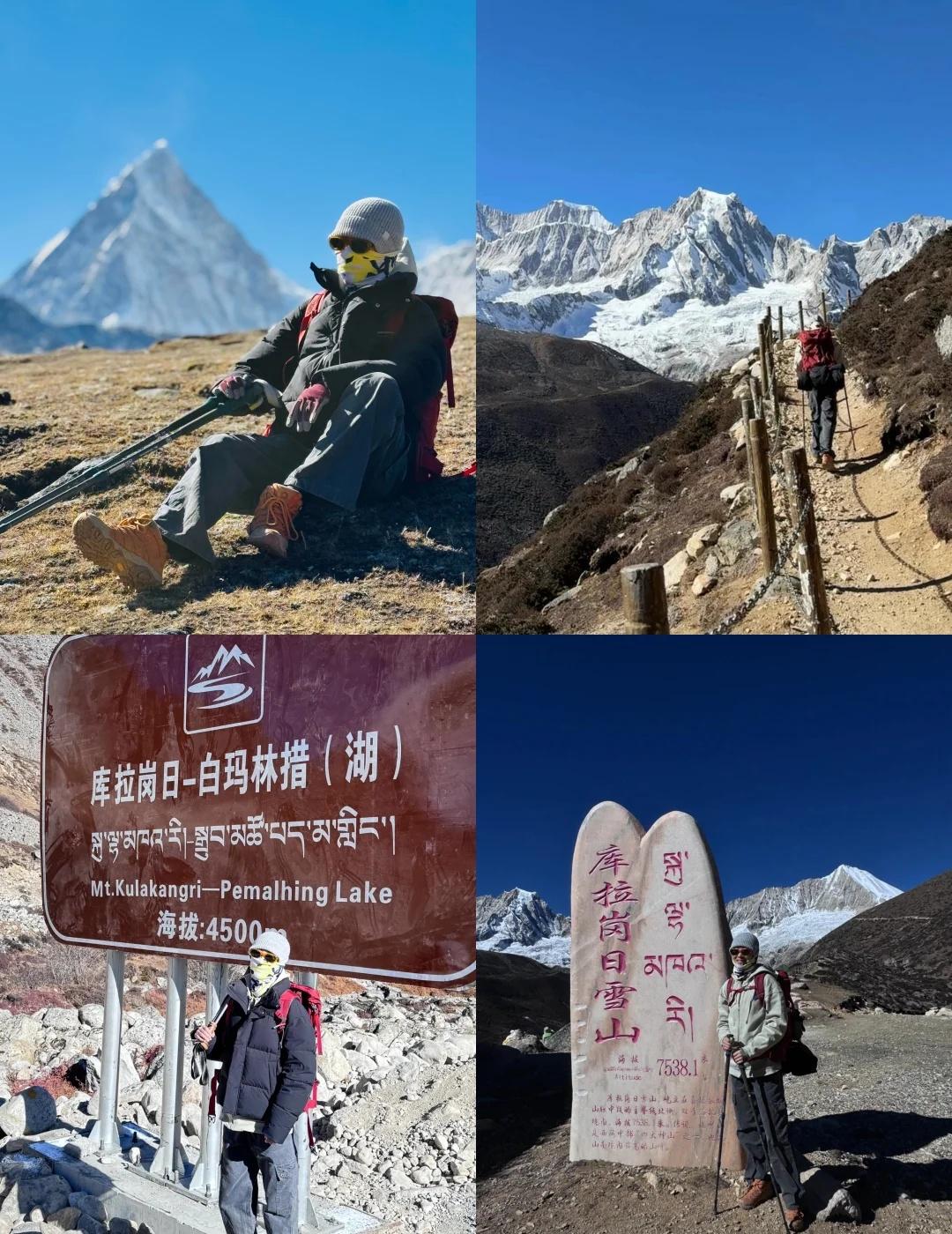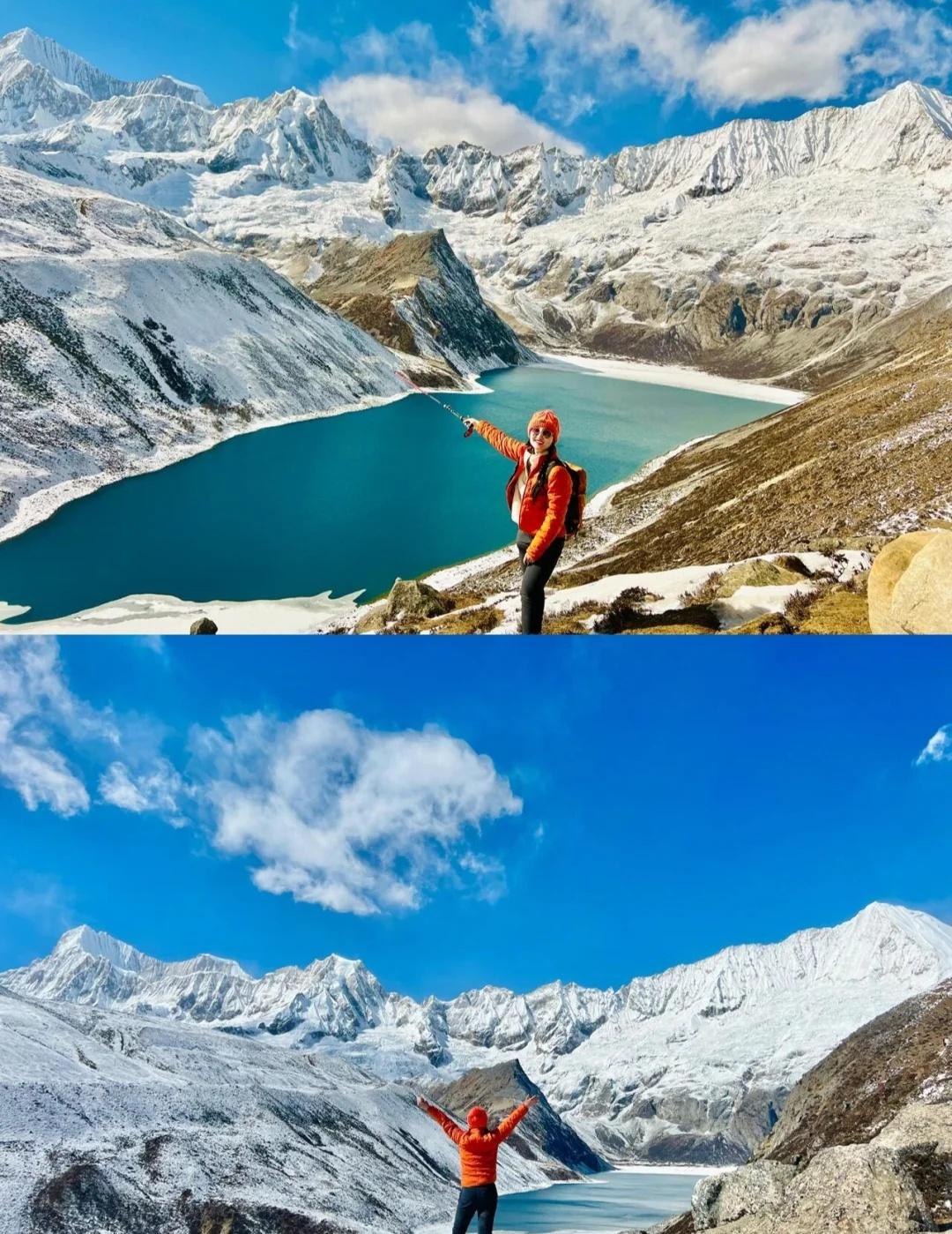 库拉岗日6天5晚超全攻略,冬天去的先收藏 谁说冬天不能徒步👣库拉岗日是我心中「蕞容易接近的雪山」No.1 . 冬天的库拉岗日的才是隐藏款仙境啊~湖水冻成蓝宝石,雪山清晰得像是伸手就能摸到,而且人超级少!分享我的6日徒步攻略👇 - 🚶♀️三条路线 1️⃣ 白马林措(新手闭眼冲) 从停车场逆时针走右手边路线,走到垭口,经幡+蓝冰+雪山倒影随便拍📸环湖10km会累很多,大家根据自己的体力选择吧,环湖一圈至少5、6个小时,和着队友拍拍照,一趟7、8个小时会更舒服 - 2️⃣ 介久措(轻松) 爬300米到山脊观景台就够了!能同时看到库拉岗日主峰和翡翠湖全景~想探险的可以下到湖边(但碎石路滑,冰爪必备!) - 3️⃣ 折公三措(勇士挑战) 海拔5100米+连续爬升600米,真的是走三步喘一口…但“一串三个湖”的冰雪奇观太震撼了!建议有高原经验的再来,新手千万别头铁😭 - 💡冬季徒步小贴士 ▫️冰爪+登山杖是必备的!路面超滑,随时很难走的,别太高估自己 ▫️下午风大尽量早出发,戴好护耳帽 ▫️库拉岗日说是入门级路线,那是对比其他路线来说的,对于户外小白还是有点强度,不是有腿就行的,感觉自己身体不适就及时下撤,不要执着于全程 ▫️一定要在拉萨适应一下,不要🙅下飞机直接出发,措玉村海拔4100,毕竟是高海拔徒步 ▫️边防证需要办理 ▫️住住山脚下的措玉村,这样不用出景区大门,离停车场4、5km,很多藏民自家开的旅馆,早饭晚饭在旅馆吃,中午需要自己带路餐,因为徒步路上是没有补给的呦 - 👗穿搭建议: 一定要穿亮色衣服!!像红色、黄色、宝蓝色等,在雪山湖泊的映衬下拍照更亮眼~ 徒步丈量世界 徒步者的天堂 库拉岗日 西藏 感受心中的神山与圣湖 白马林措 介久措