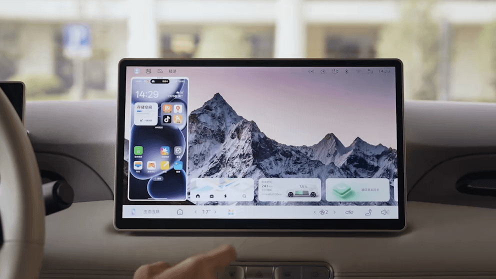 智能座舱方面,新车首发搭载了OPPO智行手车互联系统,硬件部分采用高通8155芯片,支持兼容ios、安卓等主流手机操作系统,功能方面支持语音备车,即通过移动端语音指令,车辆提前执行空调、导航等任务信息,车端也不用预装生态应用,移动端数据软件可以直接流转至中控屏,OTA后还将解锁感应控车卡片和接力导航等功能。