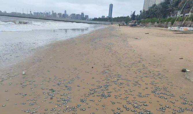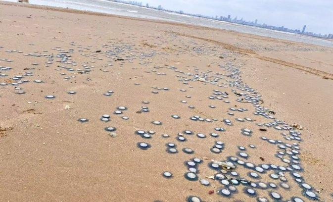 “去年也出现过,但今年数量相对多一些,有的路段密度大,有的路段相对少些。”该公司水域部经理刘艳龙介绍,从现场观察来看,这批水母多为死亡状态。“用手拨弄时,一捡起来就像烟花一样碎开,边缘会分离。”刘艳龙推测,其离开海水后已自动死亡。但他特别提醒,即便水母已死,毒性仍可能伤害皮肤。“市民千万别赤脚踩上去,避免引发皮肤病”。