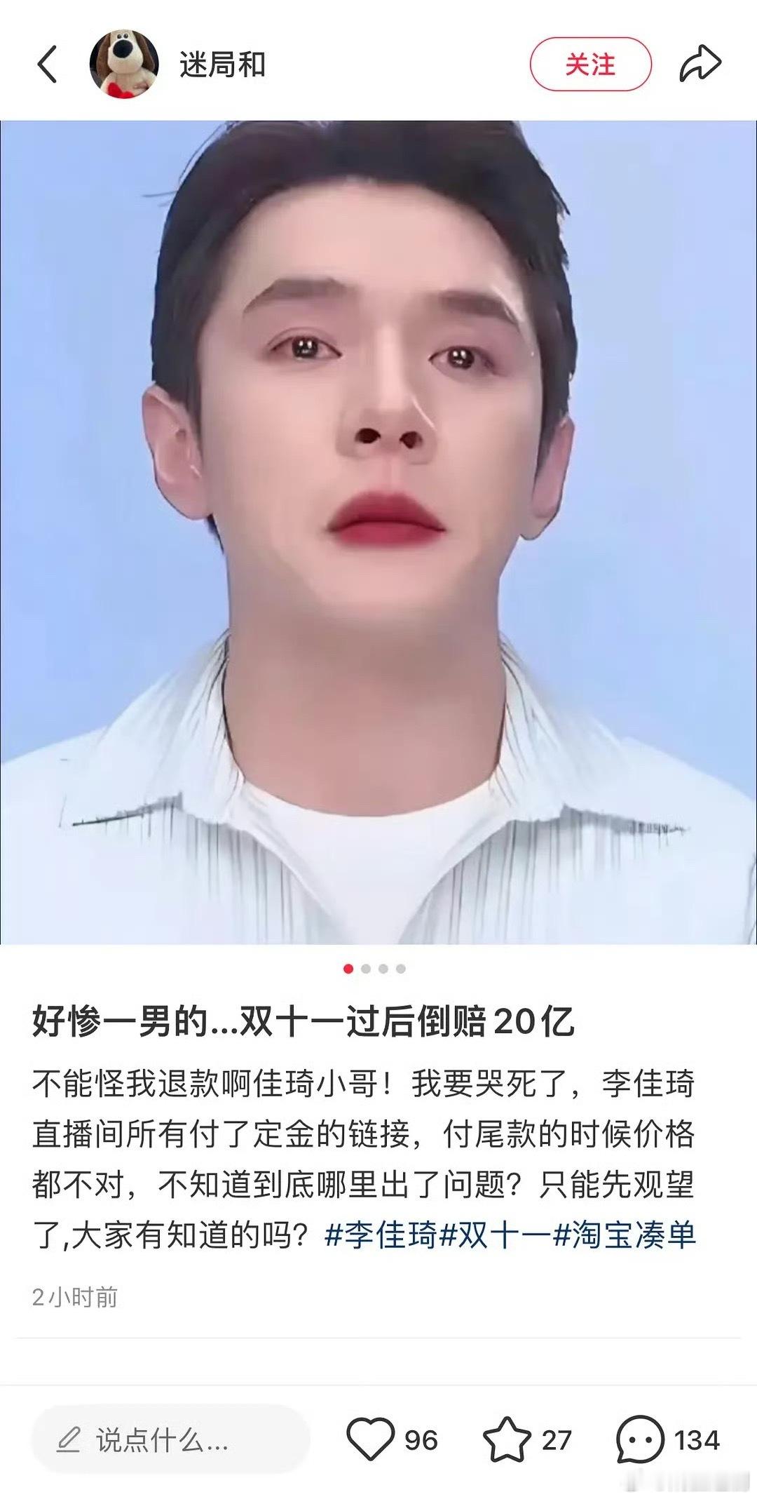 李佳琦这些年賺到盆满钵满了吧,他倒霉啥啊,倒霉的是那些品牌方吧~[呵呵]大家喜欢