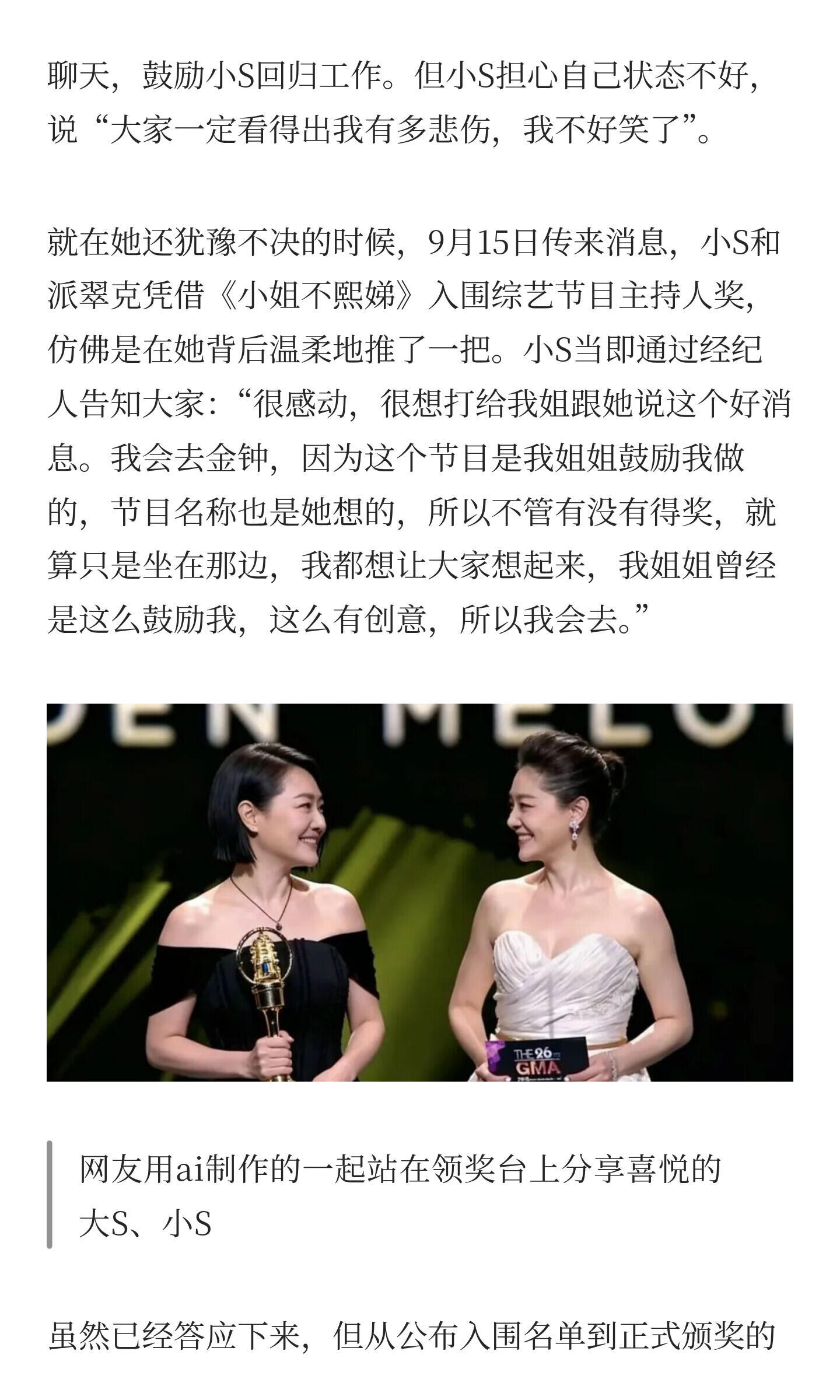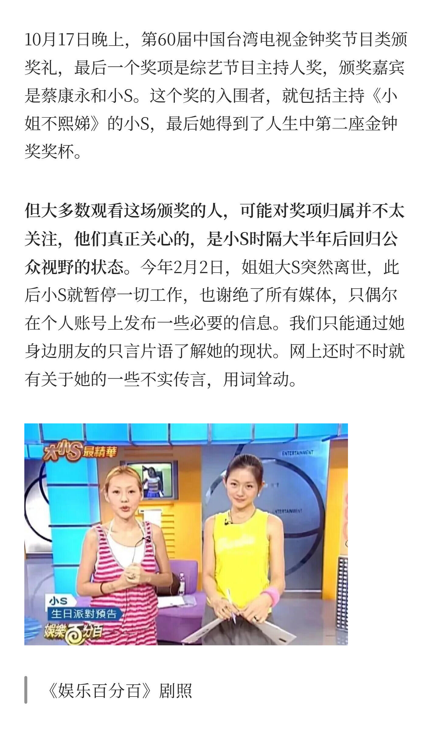 三联周刊写的「当小S终于决定面对那个“没有大S的世界”」🥹
