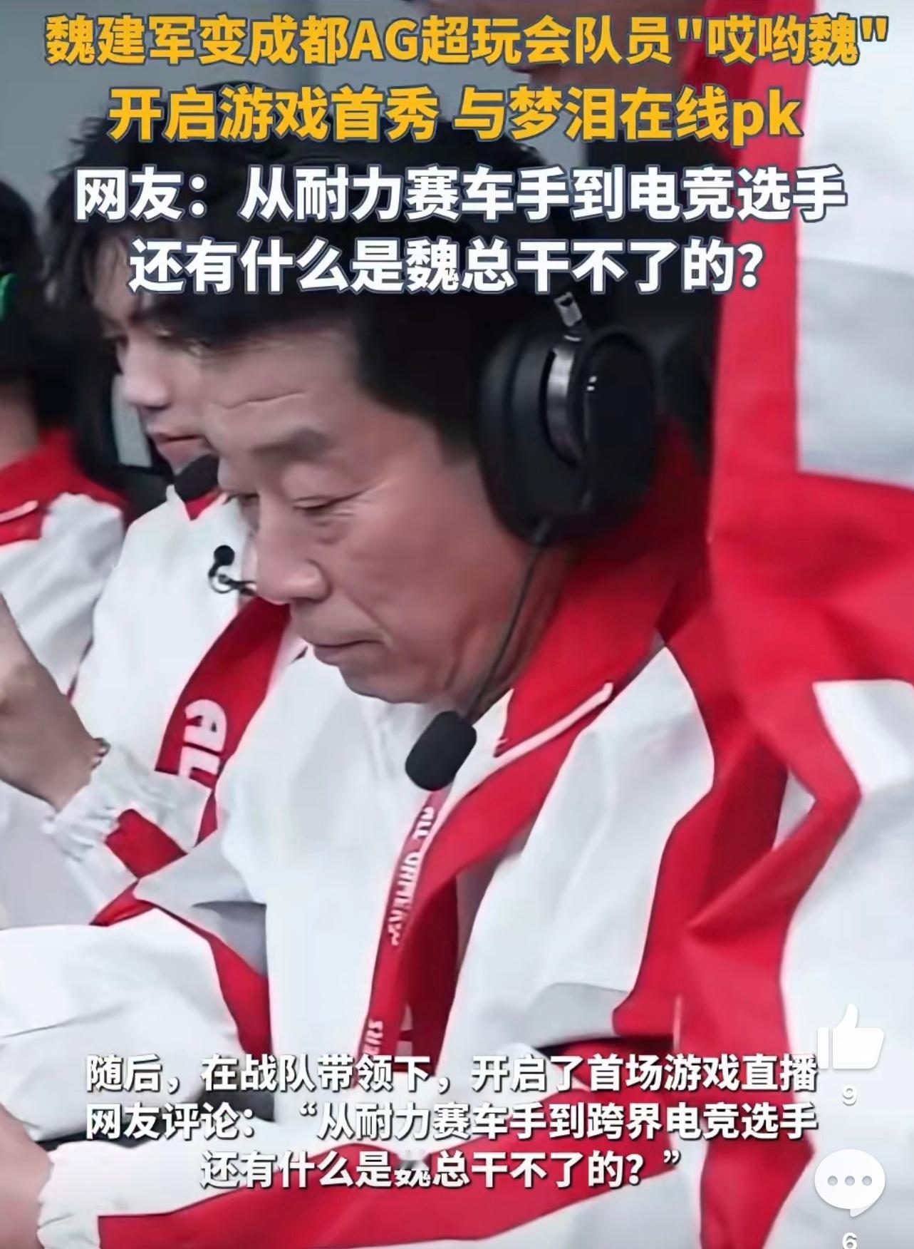 车企老板跨界打电竞魏建军成为成都AG超玩会新队员 穿战队服直播开黑,自嘲“菜但爱玩”,这波跨界把潮流感拉满。