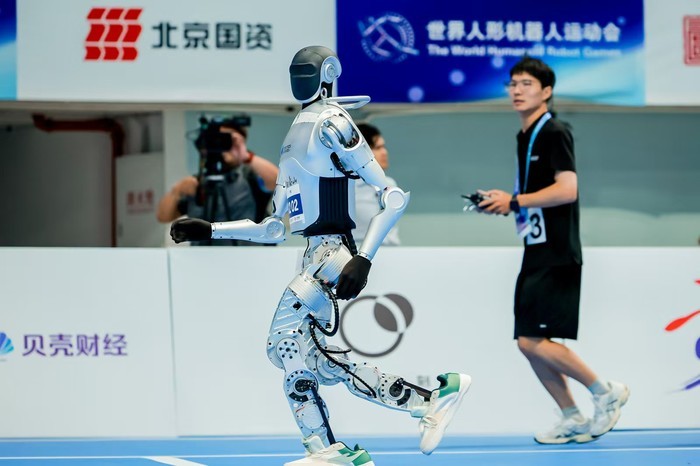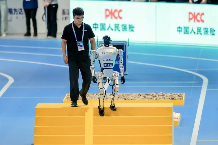 “行者泰山”来自山东优宝特智能机器人有限公司,在为期三天的比赛中,它完成了长跑、短跑、接力赛、障碍赛等全部5个报名项目,并在100米表演赛夺冠,夺得4×100米季军,可谓战绩辉煌。尤其是在机器人1500米赛事中,“行者泰山”遭遇“断臂”意外,但凭借自主研发的双足动态平衡系统坚持完赛。这一幕通过短视频平台传遍全网,让这位来自济南的“选手”火爆“出圈”。