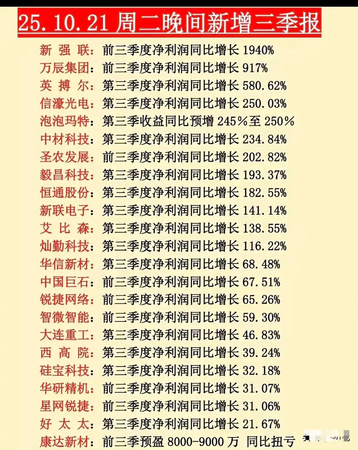 10. 新联电子:三季度净利增141.14%,电力信息化订单落地加速。电网升级与智能用电需求增长,核心产品订单放量,营收利润双增,业绩弹性凸显。