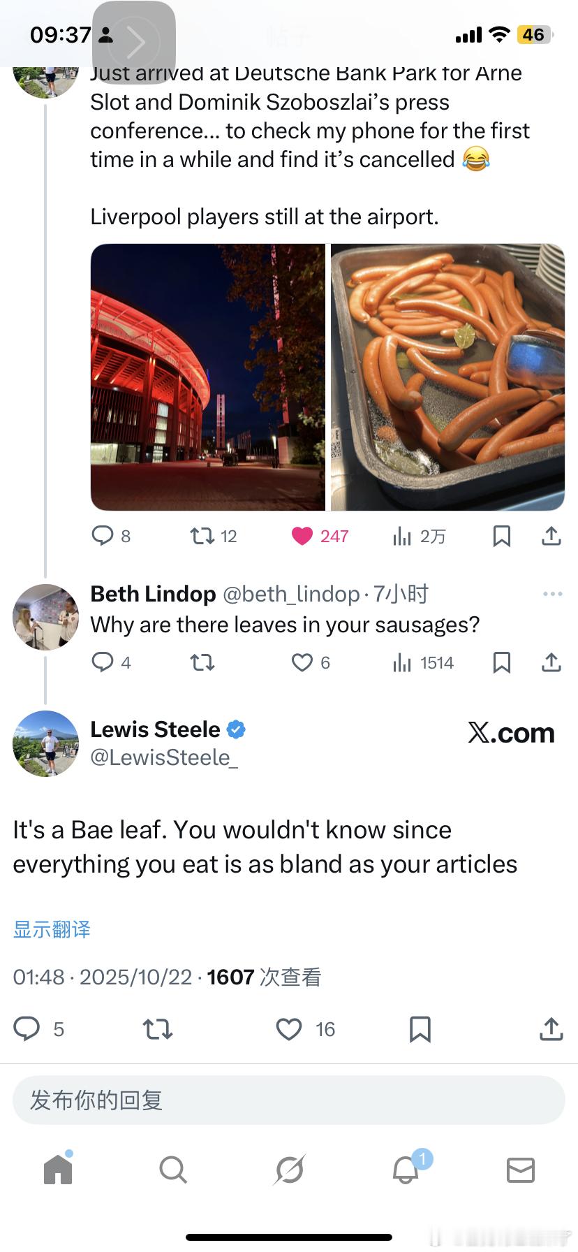 刚赶到德意志银行公园准备参加斯洛特和索博斯洛伊的新闻发布会……结果一摸手机才发现发布会取消了啊😂