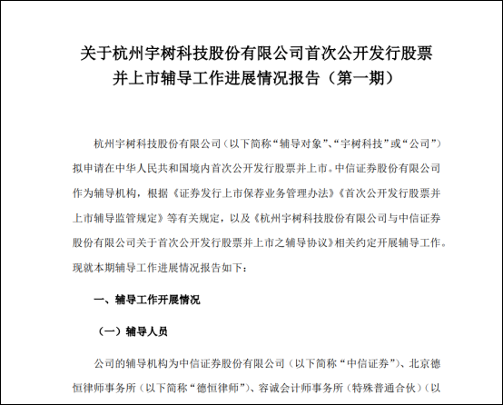 据证券时报10月21日消息,宇树科技IPO辅导机构中信证券近日提交了“辅导工作进展情况报告(第一期)”。