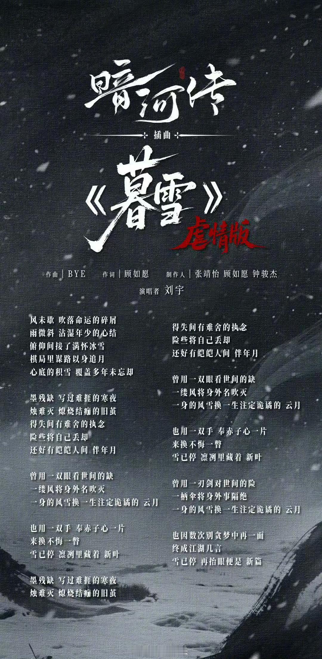 原来真的有人能把“虐”唱得这么有画面感!刘宇唱《暮雪》时的气声和转音,像雪落在掌心慢慢化掉的遗憾,听完满脑子都是“如果能重来”的宿命纠葛,已经加入我的emo歌单top1!刘宇[超话]