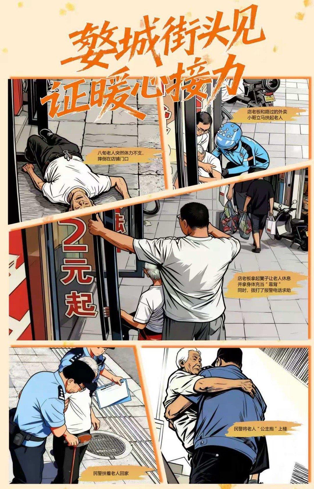 浙江警民接力救助摔倒老人 从店老板、外卖小哥的伸手相助,到民警的“公主抱”护送,金华街头上演了一场温暖的爱心接力。他们扶起的是老人,撑起的是善良,守护的是城市的文明底色。为这些平凡英雄点赞!