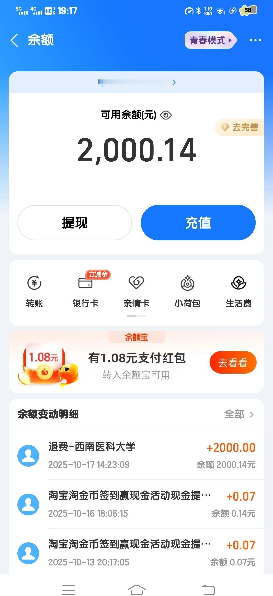 真的好意外!!学校一声不吭就发钱 朋友们,事情是发生在今天下午。 中午就收到了辅导员的信息,但是当时还以为是什么不重要的信息,就没有立即点开看。下午上课的课前,就按照辅导员的消息,去支付宝上面,结果发现有2000元代领取。当时真的很懵逼,完全不知道是哪里来的钱,而且数额对于我来说也比较多,就赶忙问了一下旁边的室友。她没有但是她说可能是新生奖学金,就是第一志愿报考录取会有一笔奖金。 于是就在上面搜了一下西南医科大学新生奖学金文件,结果发现自己真的都符合,很意外也很开心!!没想到这份偶然的机遇也让我体验到了[大笑] 学校新生奖学金优秀奖学金的要求有以下三个 1.第一志愿报考 2.高于省控线100分 3.高考成绩和第一专业录取(省内) 虽然今年高考成绩也不是很理想,比自己预想的分数还是低很多,但经过自己复读一年的努力,也没有低于自己能力的下限。学校的这三个要求也都是满足的,刚好我也是第一志愿第一专业录取。很开心读到了自己喜欢的专业,而且学校自己和家人也都挺满意的。 所以此刻也特别想感谢复读这一年特别努力的自己。学校环境不错,绿化好,交通方便,离商场也不远,住的也是学校最好的四人寝,上床下桌,有电梯,还挨着学校最豪华的食堂,另外还参加了学校里与兴趣相符的部门和社团...所有的一切都要好好感谢那个从不放弃的自己,愿意从头再来为梦想努力拼搏的自己[心] 希望大家也都能得偿所愿,一起好运附体[心][心][心]奖学金 新生奖学金