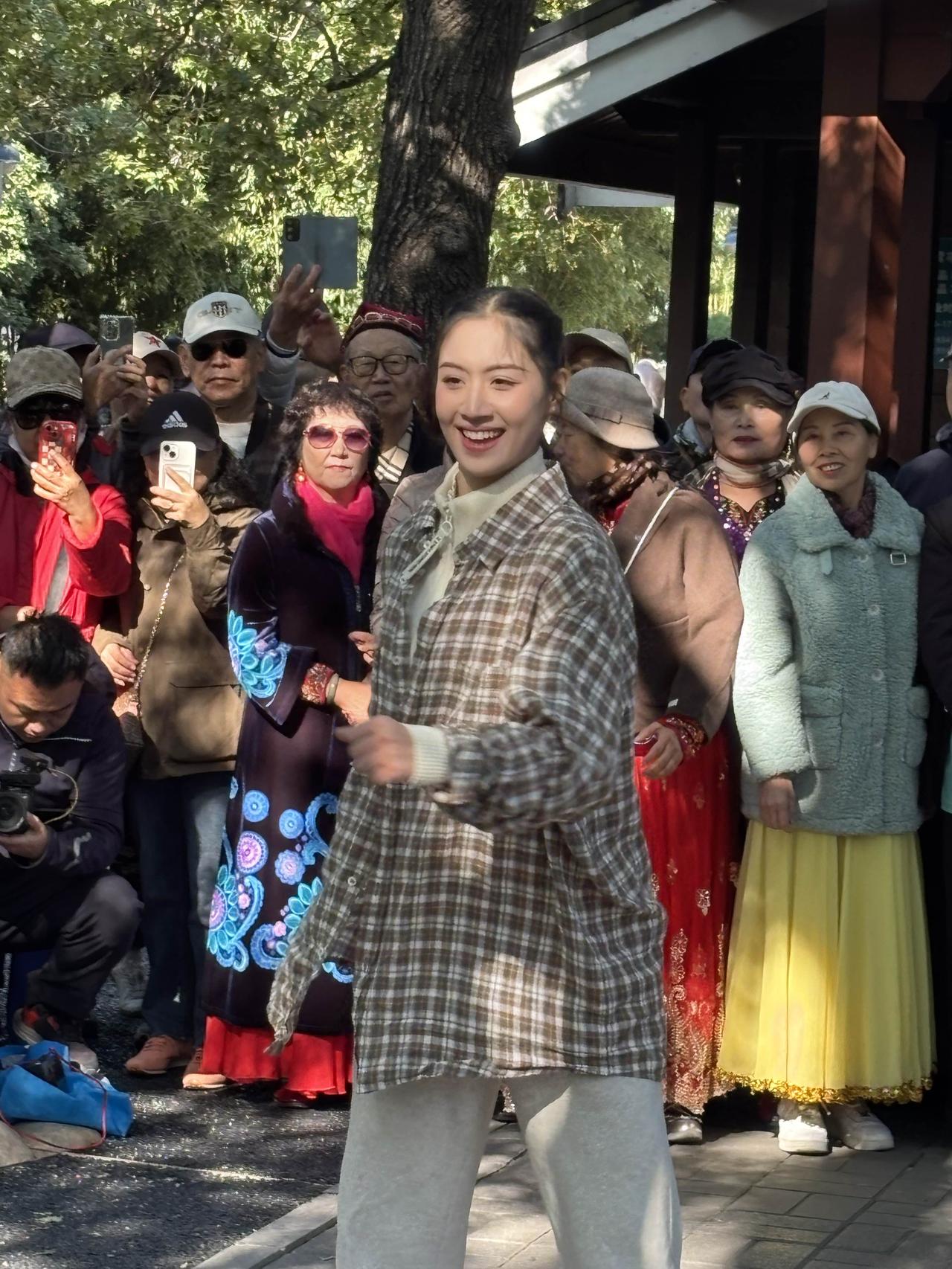 新疆美女, 中央舞蹈学院高材生 来到公园里与 各路新疆舞爱好者一起交流 被中央电