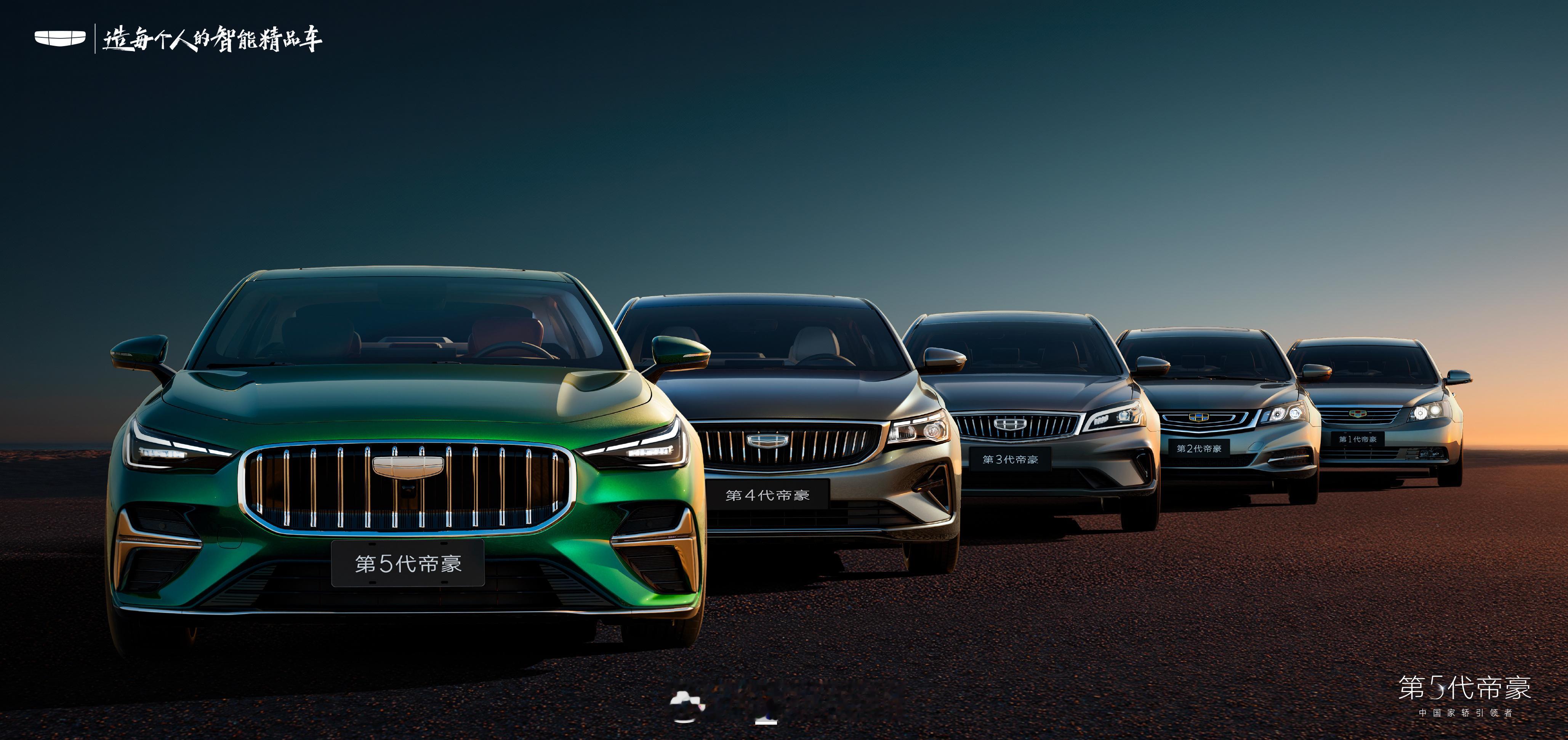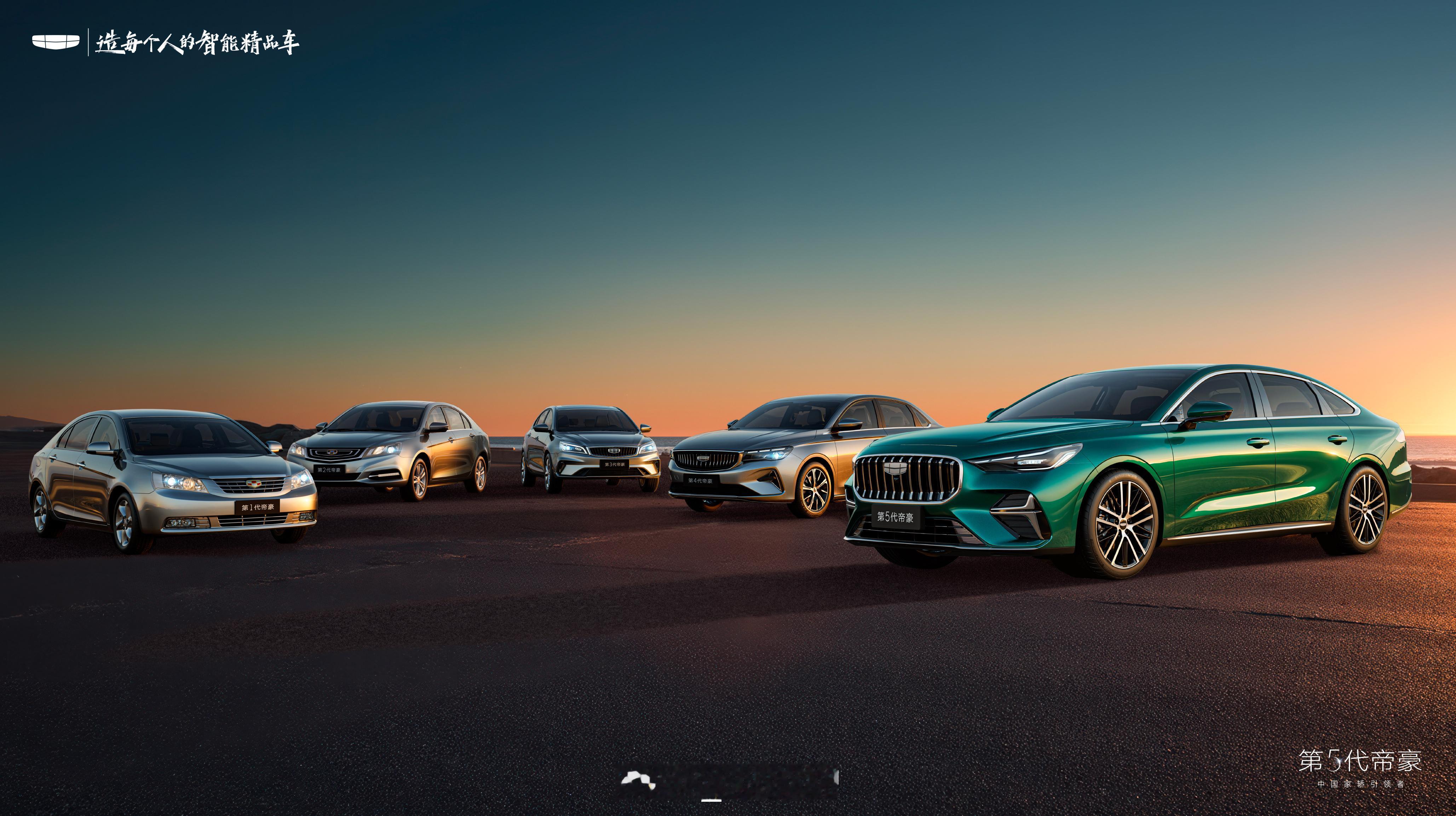 历代吉利帝豪同框,从第一代到第五代,是一款车型的进化史,也是吉利汽车的进步史