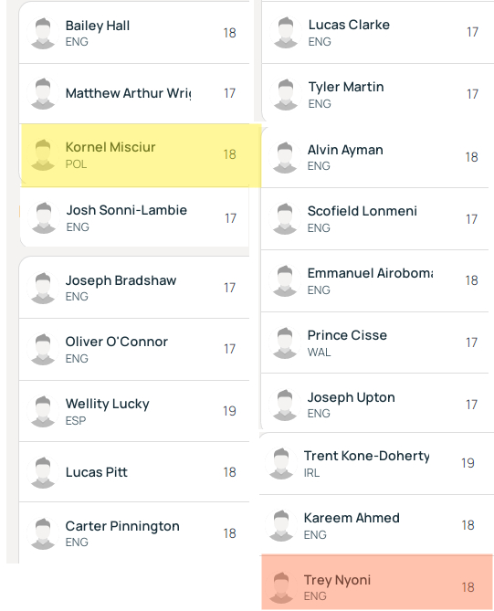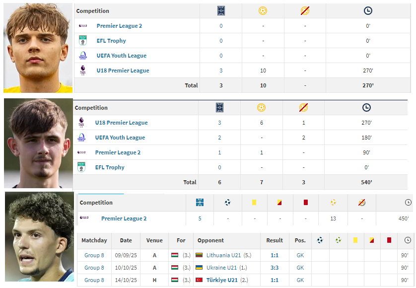 本赛季随着佩奇的加盟,U21联赛首发门将似乎就失去了悬念,赛季初霍尔给佩奇当替补;米斯丘尔被“降”回到了U18,DJ伯纳德给他当替补,他在U18就首发了三场……
