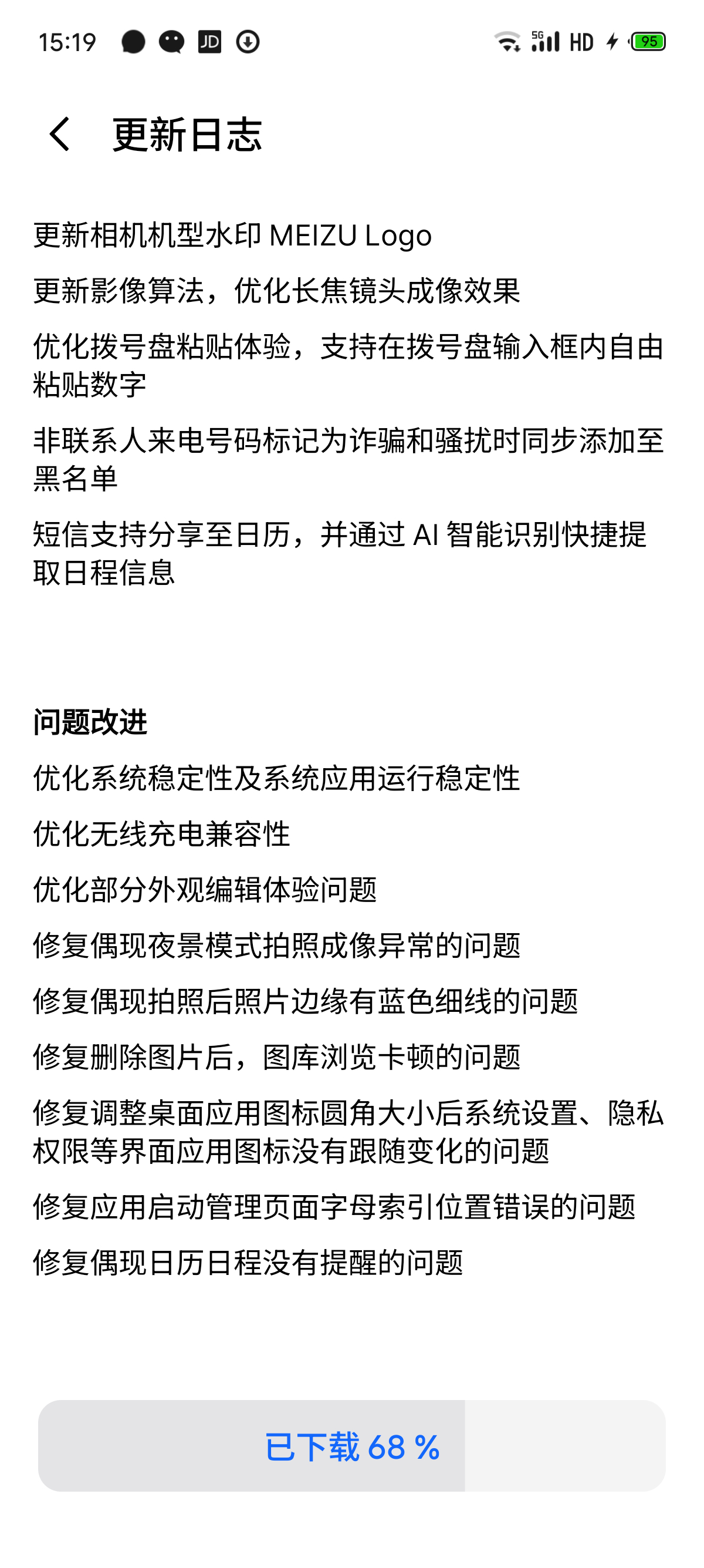 魅族 22系统更新啦,快看看有没有你提交的bug被修复了[流鼻血]