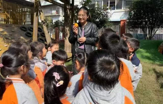 活动正式开始前,老师们带领孩子们来到柿子树下,开启“自然科普时间”。教师结合柿子树的生长特点,用生动易懂的语言向幼儿讲解柿子从开花到结果的全过程,引导孩子们仔细观察柿子的形状、颜色与触感。“老师,这个柿子红红的,像小太阳!”“摸起来软软的,一定很甜!”孩子们围在果树旁,你一言我一语,好奇的目光中充满了对大自然的探索欲与对丰收的向往,清脆的童言稚语为秋日校园增添了几分活力。