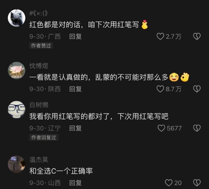 实在不行下次用红笔写吧,我看用红笔写的都是对的[捂嘴哭][捂嘴哭][捂嘴哭]