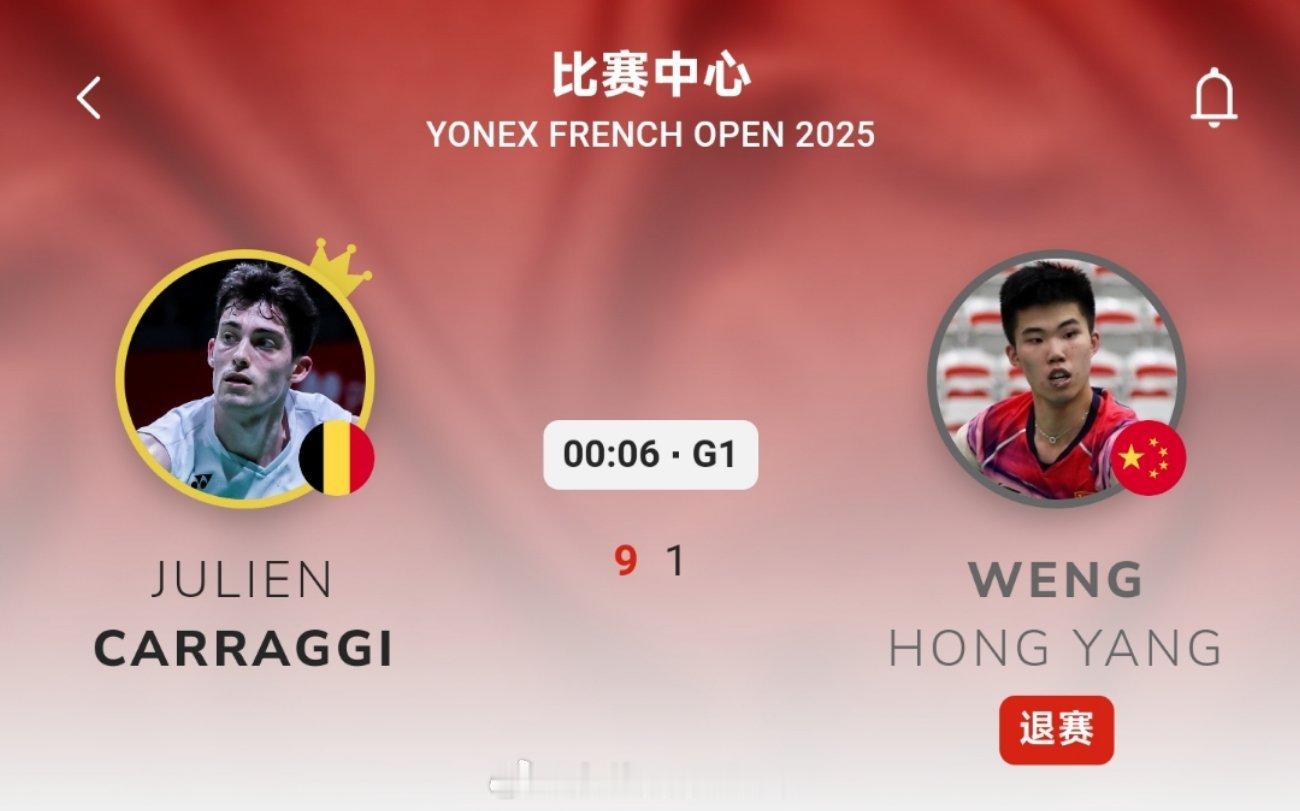 翁泓阳🇨🇳(退赛) 1-9 朱利安🇧🇪
