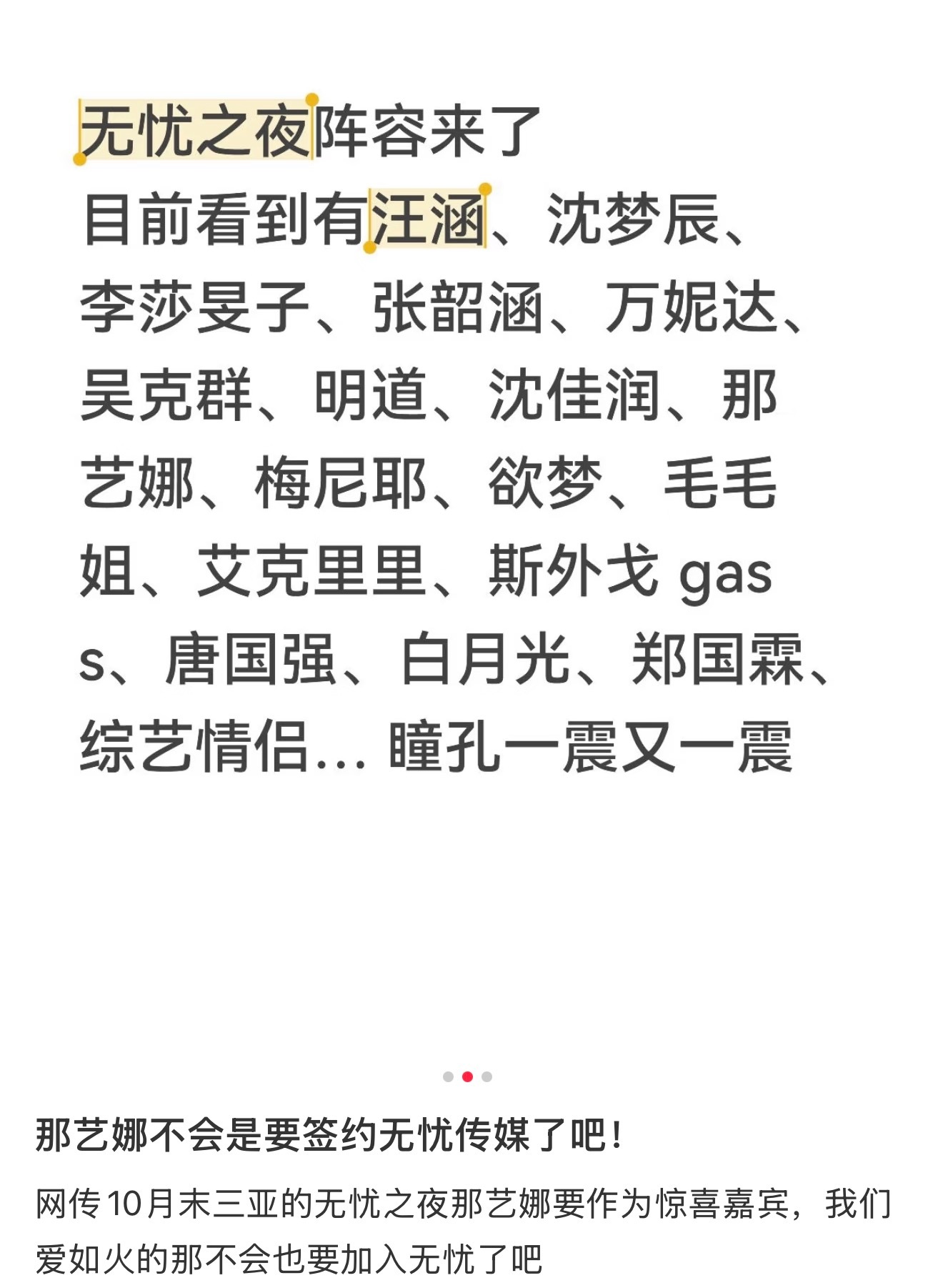 网传那艺娜即将加入无忧传媒😦作为惊喜嘉宾参加无忧传媒旗下艺人👩🎤团建活动。