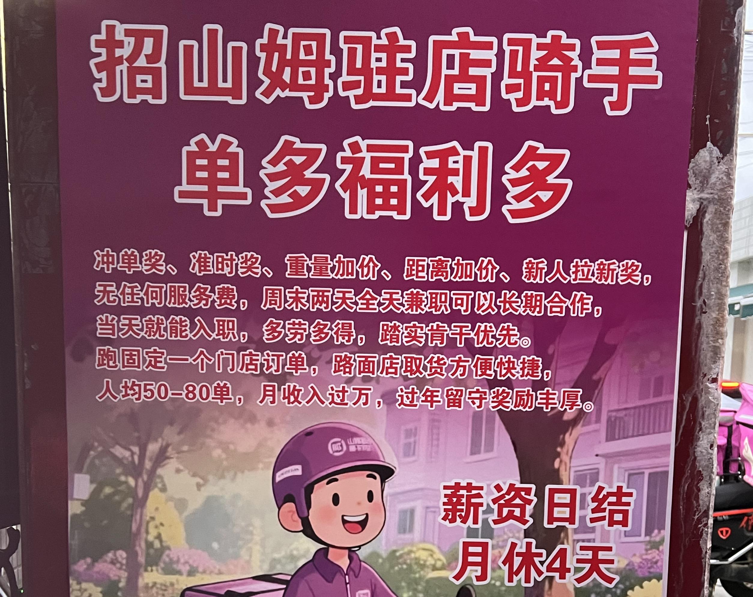 山姆驻店骑手招聘;蓝鲸新闻孙煜摄