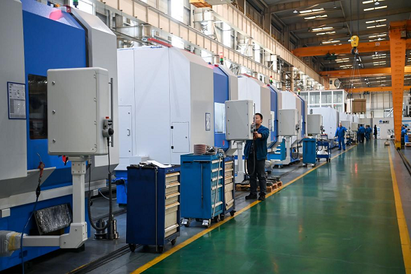 工作人员在陕西宝鸡的一家公司调试数控机床。图源:新华社