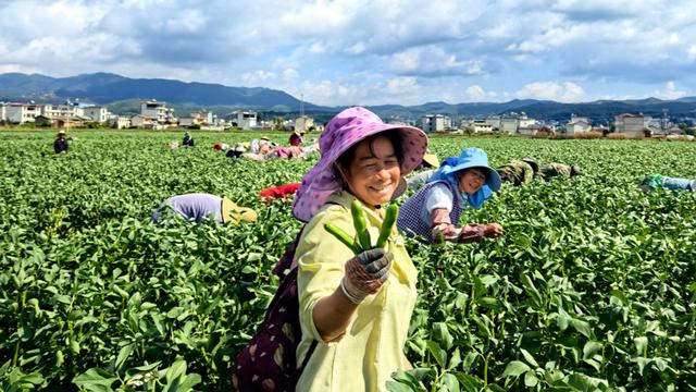 “以前种一茬,现在种两茬,每亩收入翻了一倍多!”在牟定,除每亩约15000元的种植收益外,蚕豆采摘、分拣、打包等环节每天创造100多个季节性岗位,留守妇女和老人日均收入80-100元,人均月增收近3000元,累计带动劳动收入超400万元。数据显示,近两年来,牟定县销往上海江桥批发市场的大粒蚕豆销售额突破1.4亿元,综合产值超2亿元。