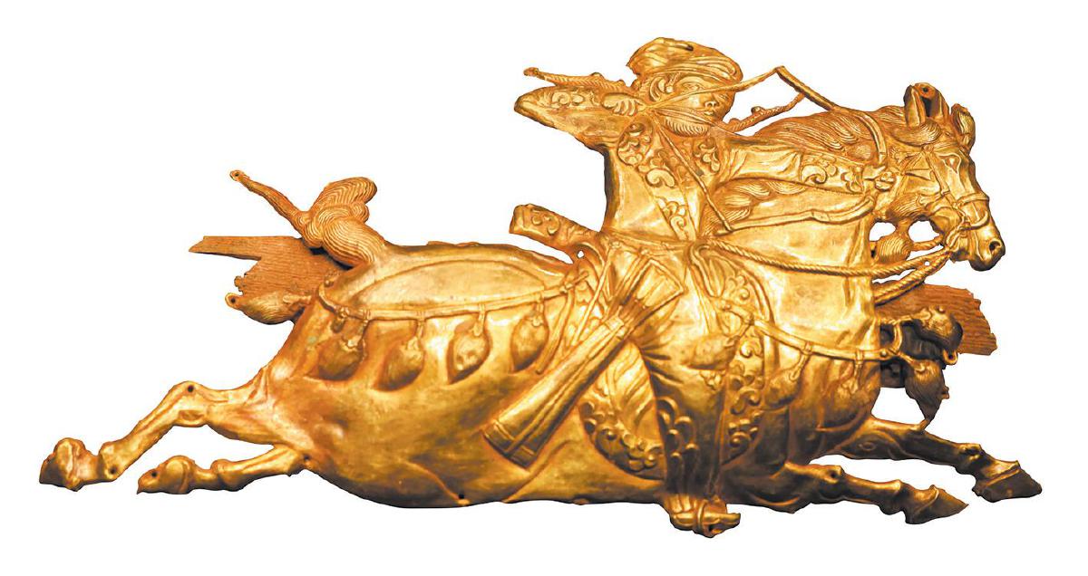 “大家可能会发现,很多金器和草原文化、草原部落、草原贵族息息相关,这是因为中原汉人更尚玉器,而黄金最初是草原民族的一种装饰,特别是一些马具,能体现‘马背上的民族’特色。”赵婧说。
