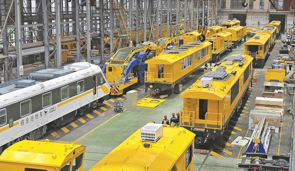10月20日,金鹰重工在有序生产“钢轨打磨神器”。